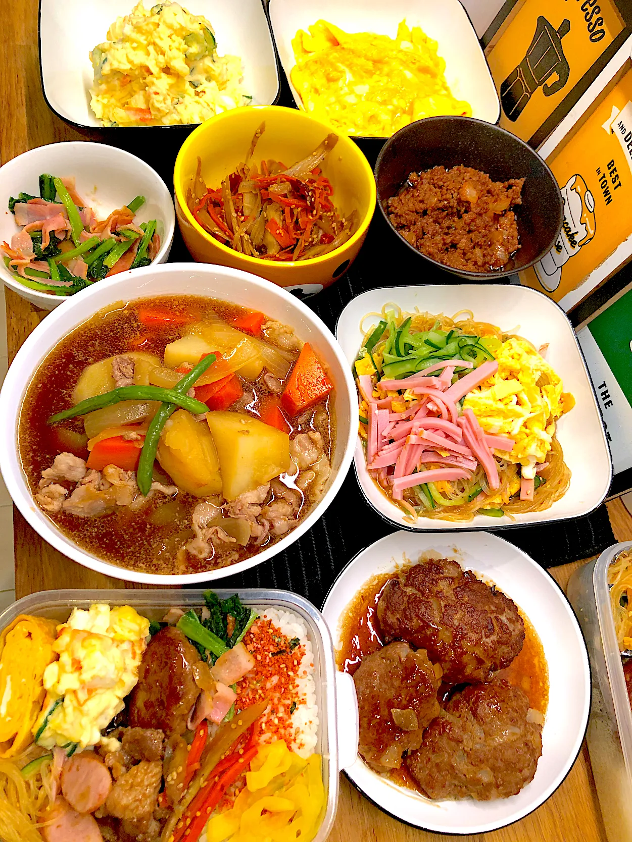 肉じゃが 春雨サラダ オムレツ 和風ハンバーグ きんぴら|湊叶ママさん