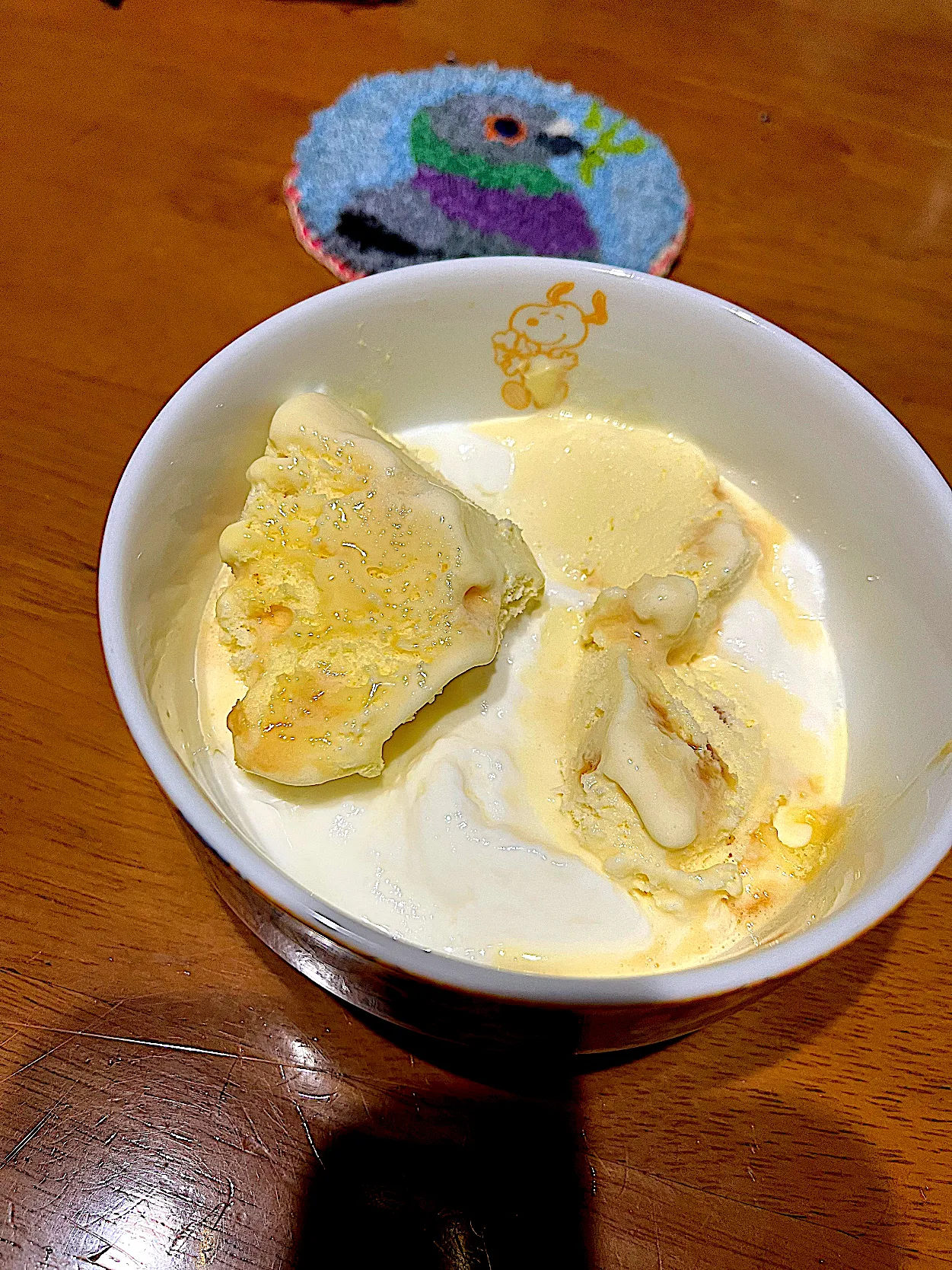 昼寝ってからの #おやつ アイス混ぜヨーグルト