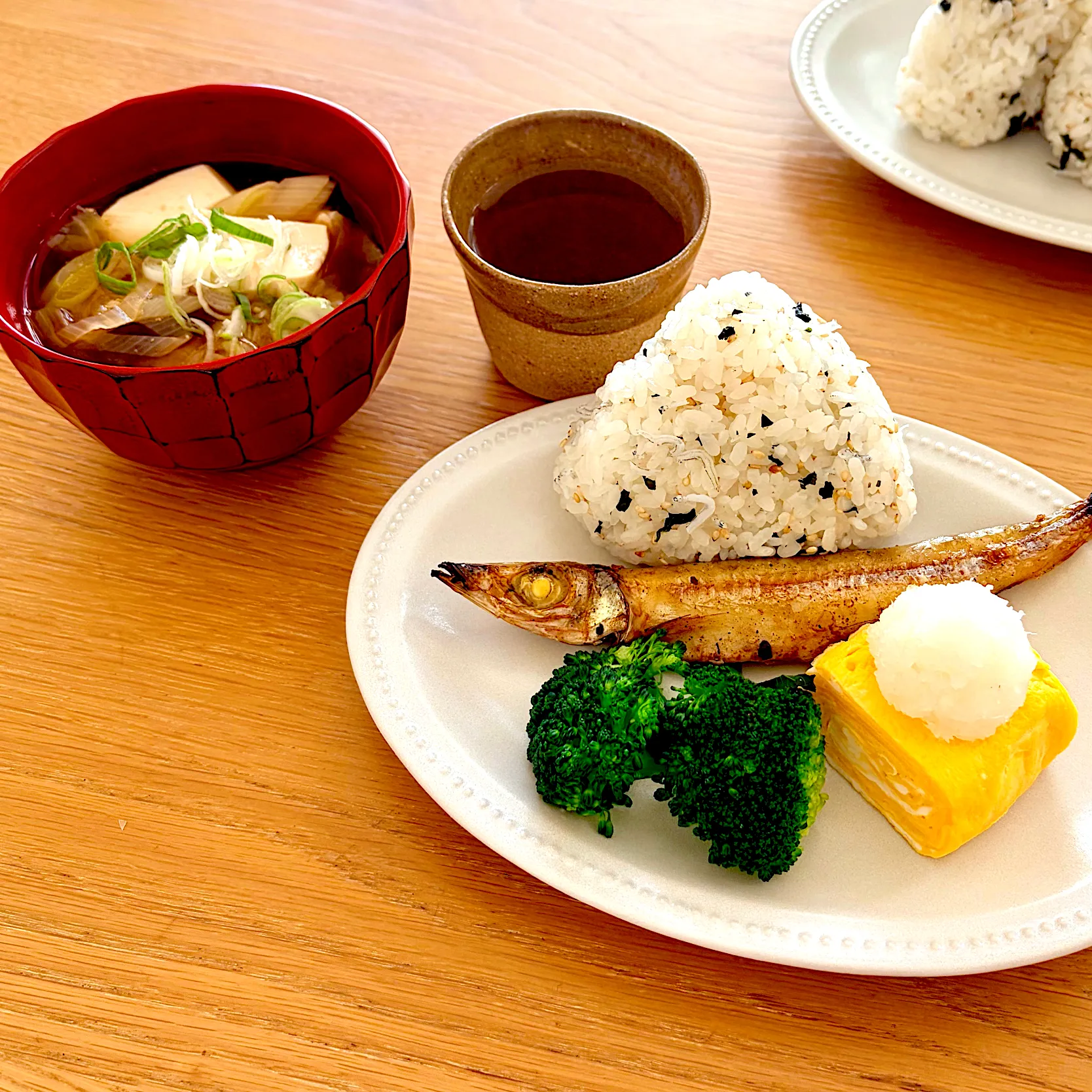 #朝ごはん #和朝食 #おにぎり #だし巻き卵 #一夜干し #お味噌汁 #丁寧な暮らし #心の庭 #あったかい時間