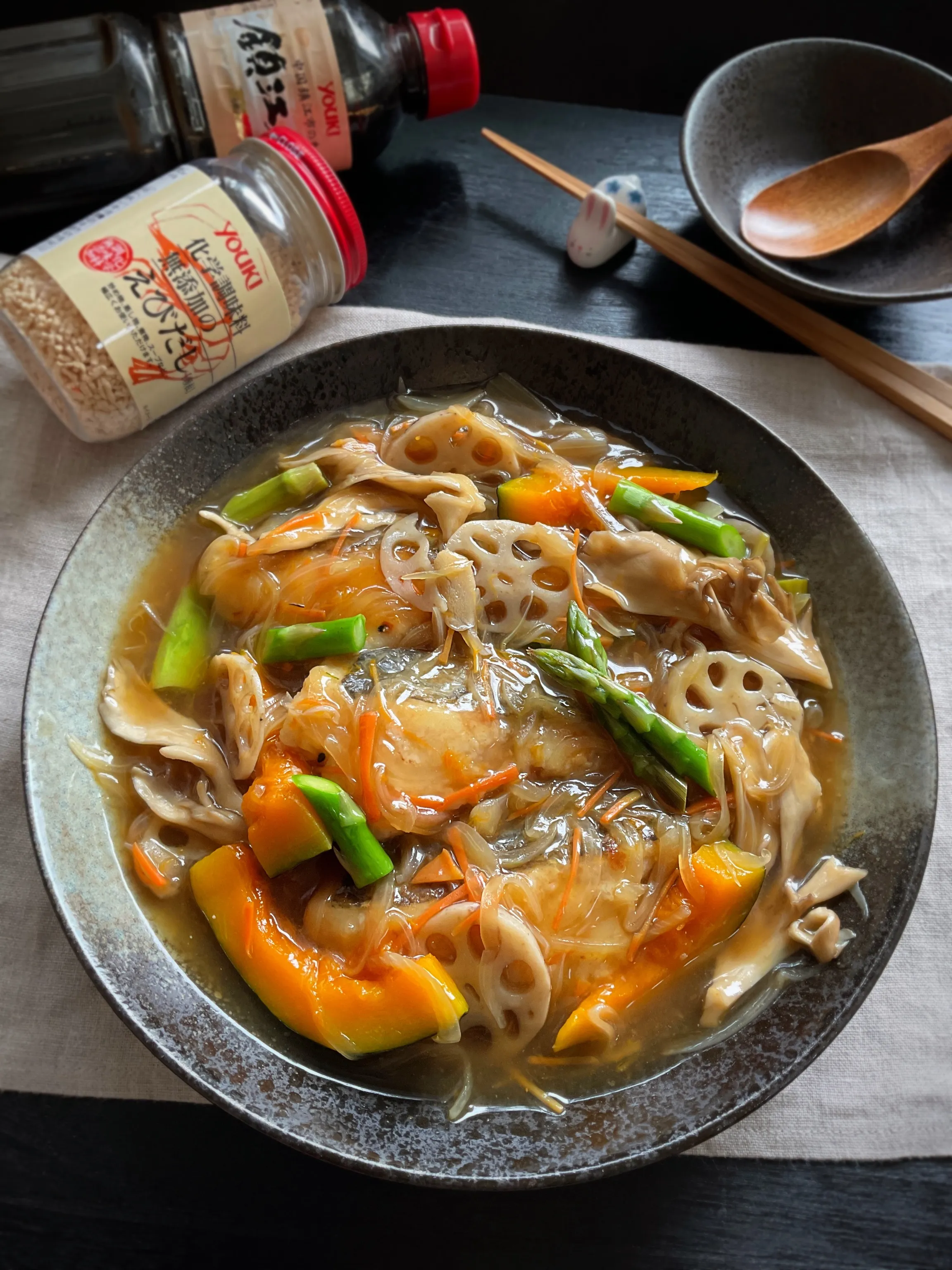 蓮根やカボチャで具沢山な鱈の餡掛け😍😍✨
