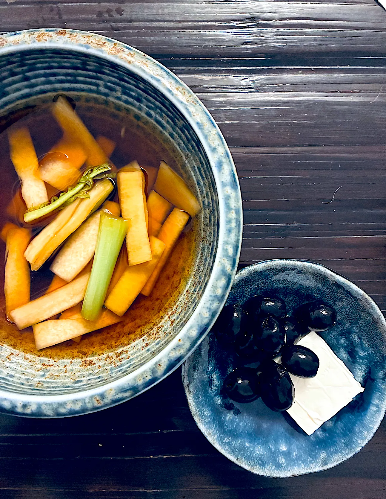 大根の皮のしょうゆ漬けとブラックオリーブとクリチー🍾