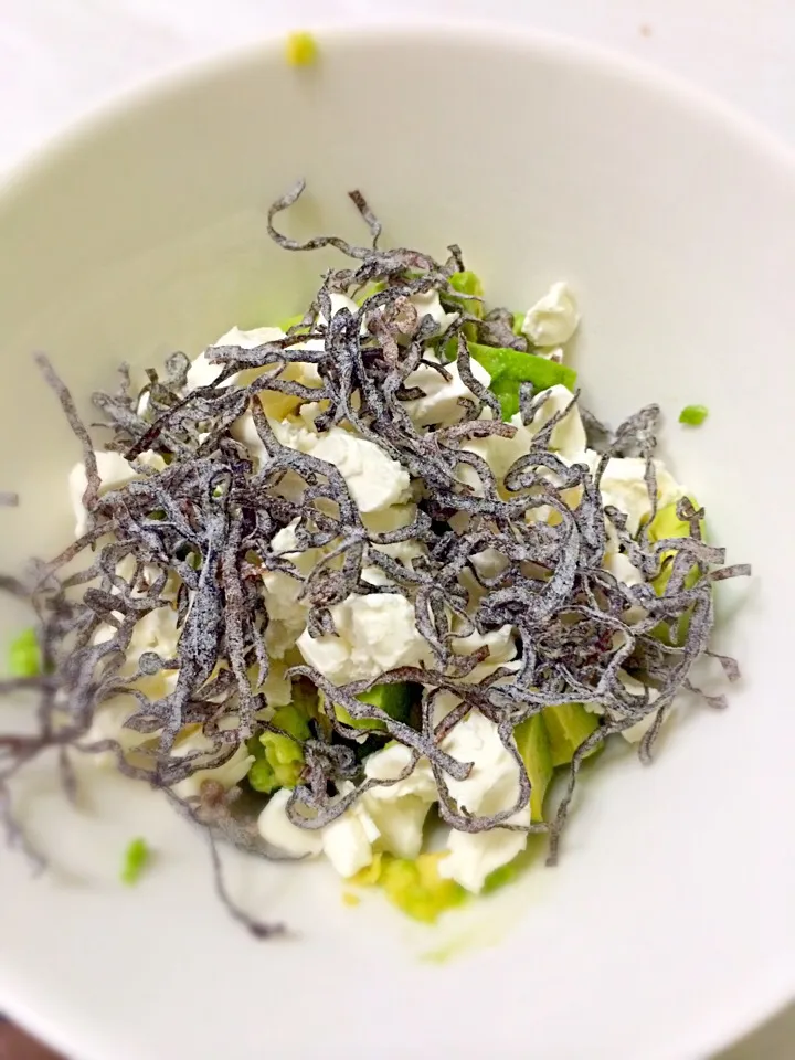 テレビで見た居酒屋メニュー。アボカドとクリームチーズと塩昆布を合わせただけ。美味いけど、同じアボカドなら、ナメタケと海苔を合わせた方が好み。