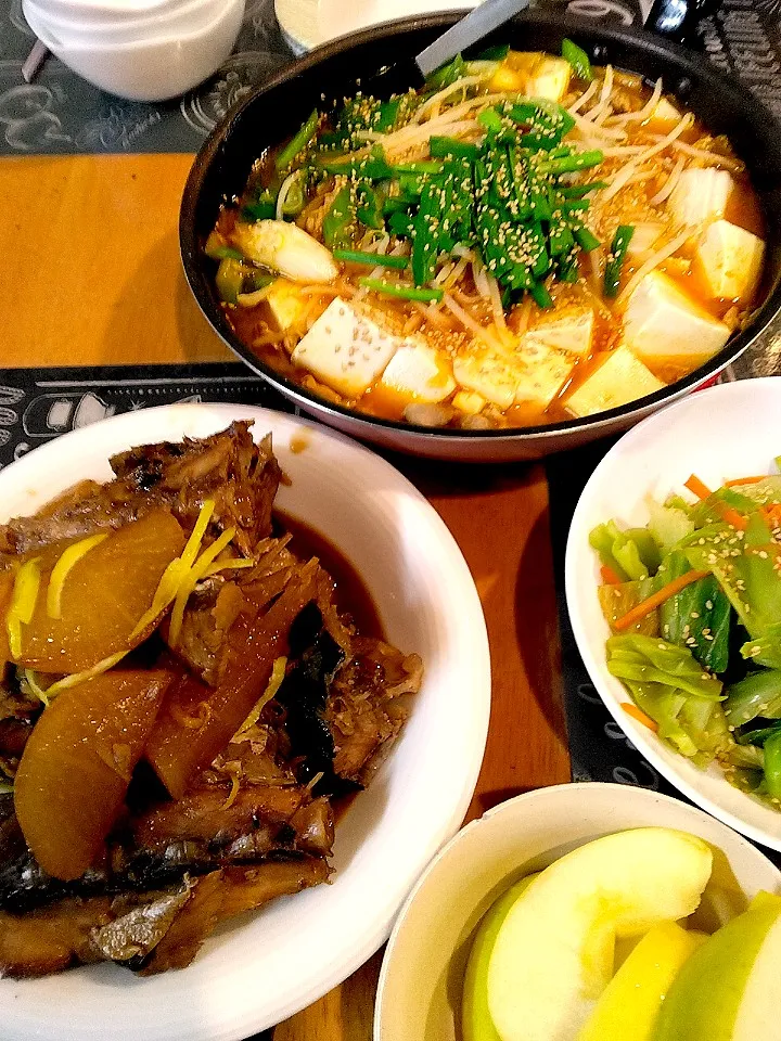 #キムチ鍋#ぶり大根#ゴルフ柚子のキャベツ和え