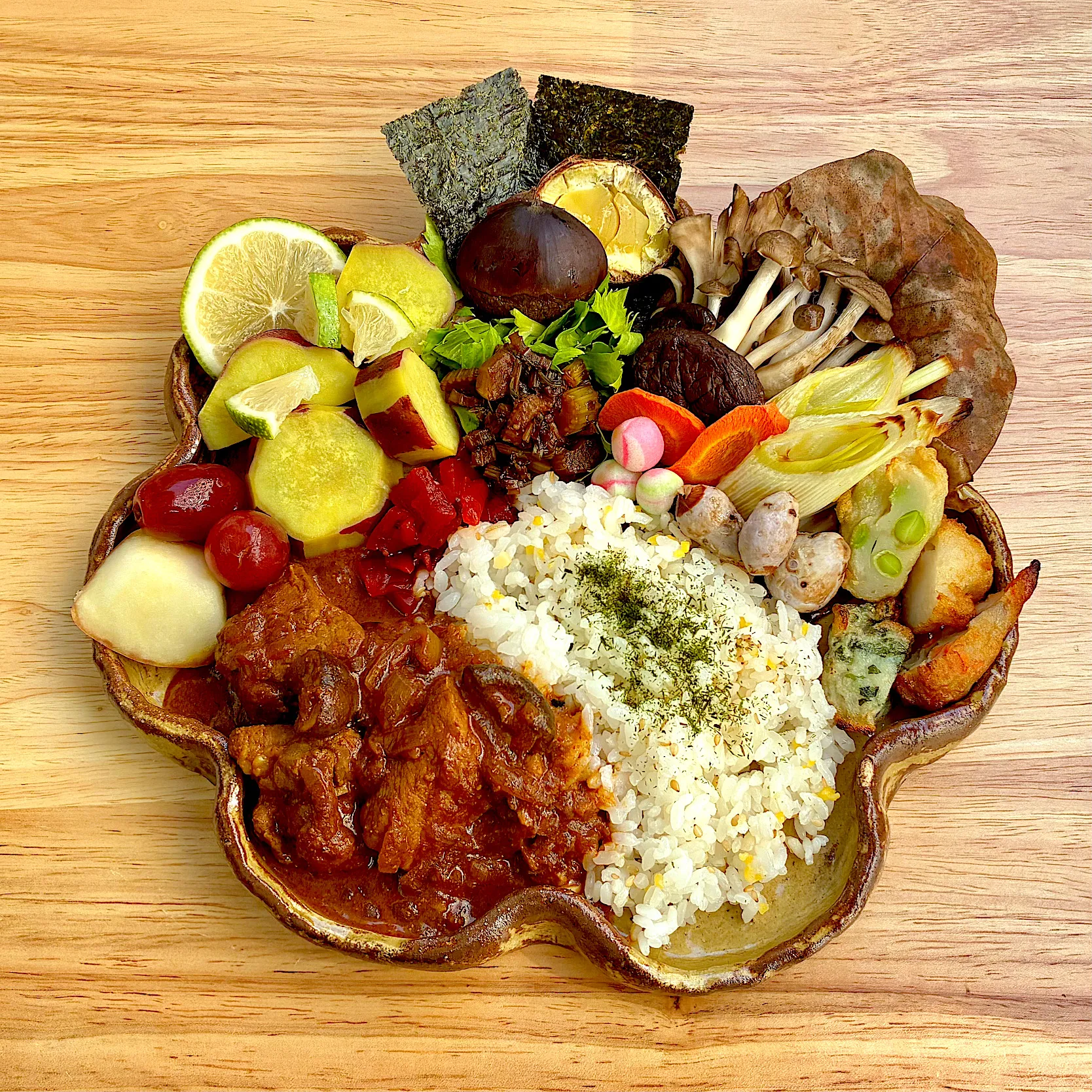 #ポークカレー #八丁味噌 #朴葉焼き #栗