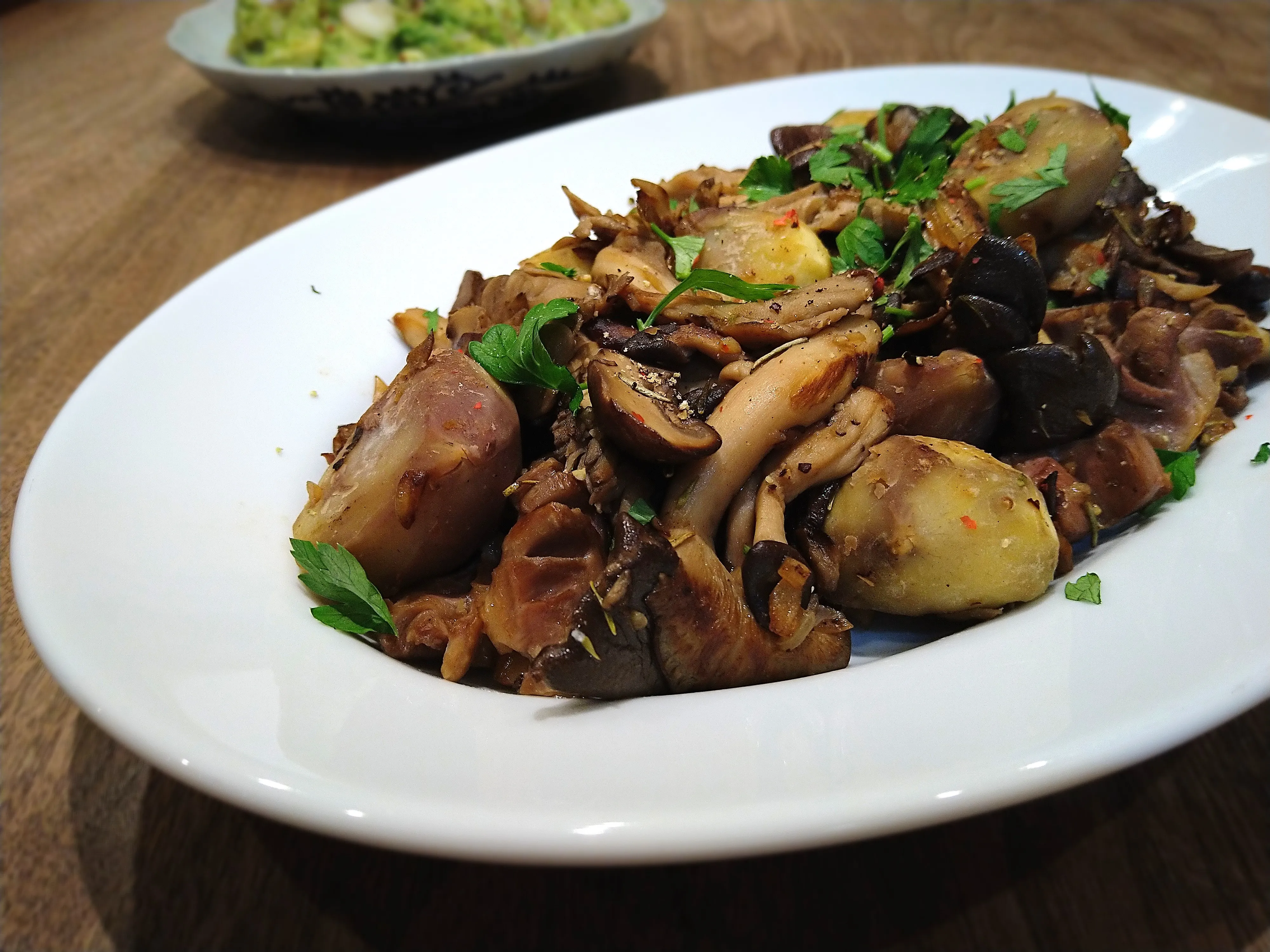 #きのこの日(10月15日) #焼く/炒め物 #おつまみ#きのこ#マッシュルーム#椎茸#ポルチーニ#しめじ#栗#栗のおかず#肉料理#砂肝 #ワインのお供