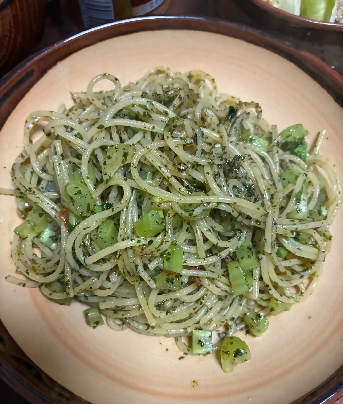 大根の先に申し訳程度についてた大根葉を刻んで炒めています。