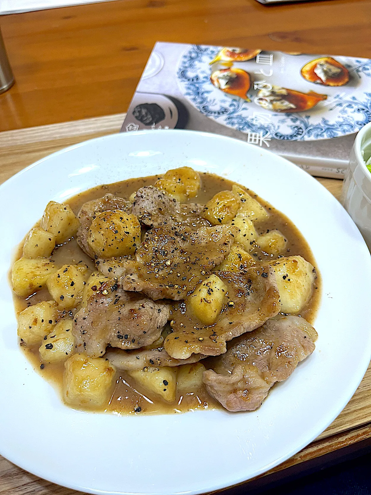 とても好きで何年も作ったのですが、もっと手軽に食べたいと思い、焼肉用にカットされた手頃な肩ロース肉と道の駅で見つけた見切り品ラフランスでつくりました!