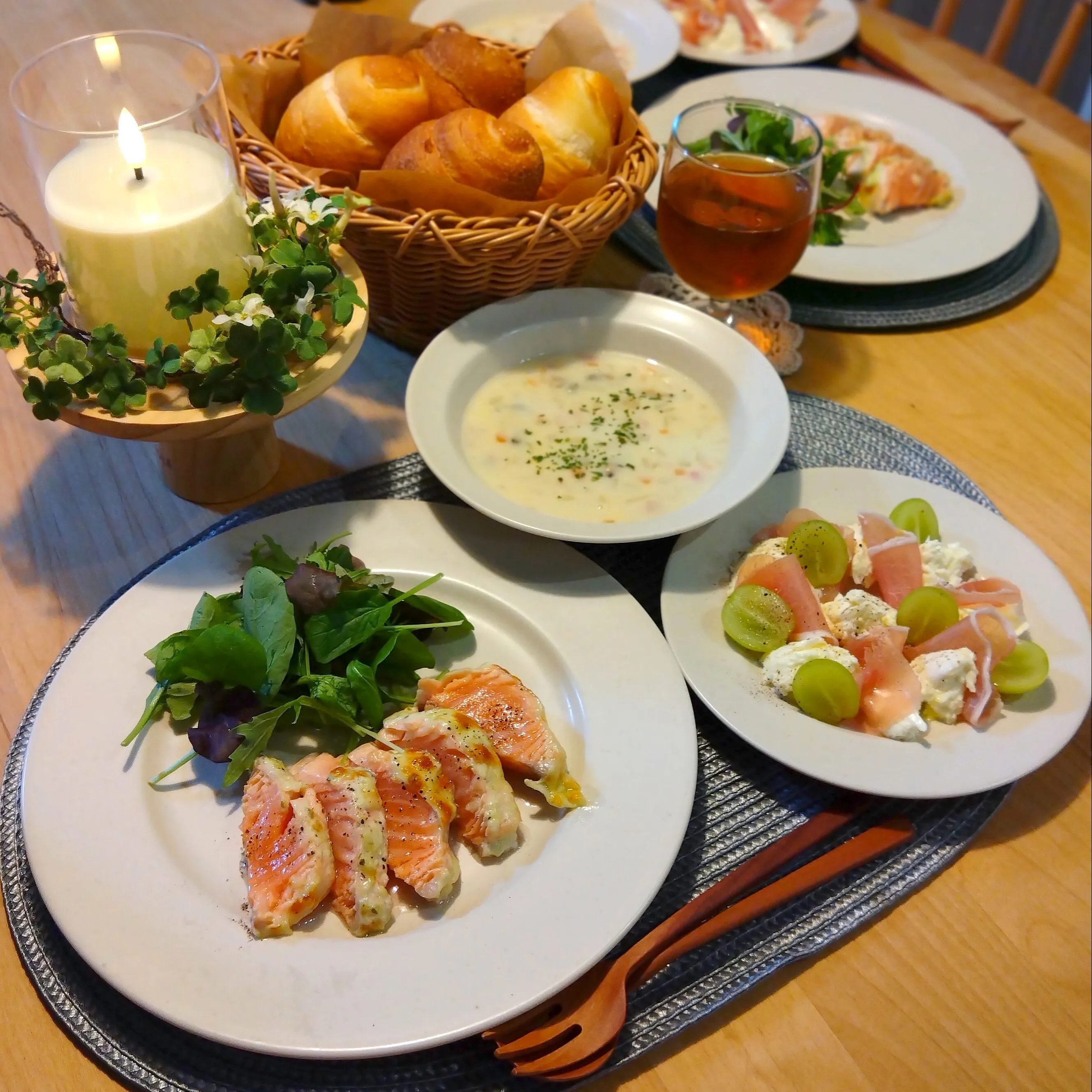 #生ハムとモッツァレラとシャインマスカットの前菜