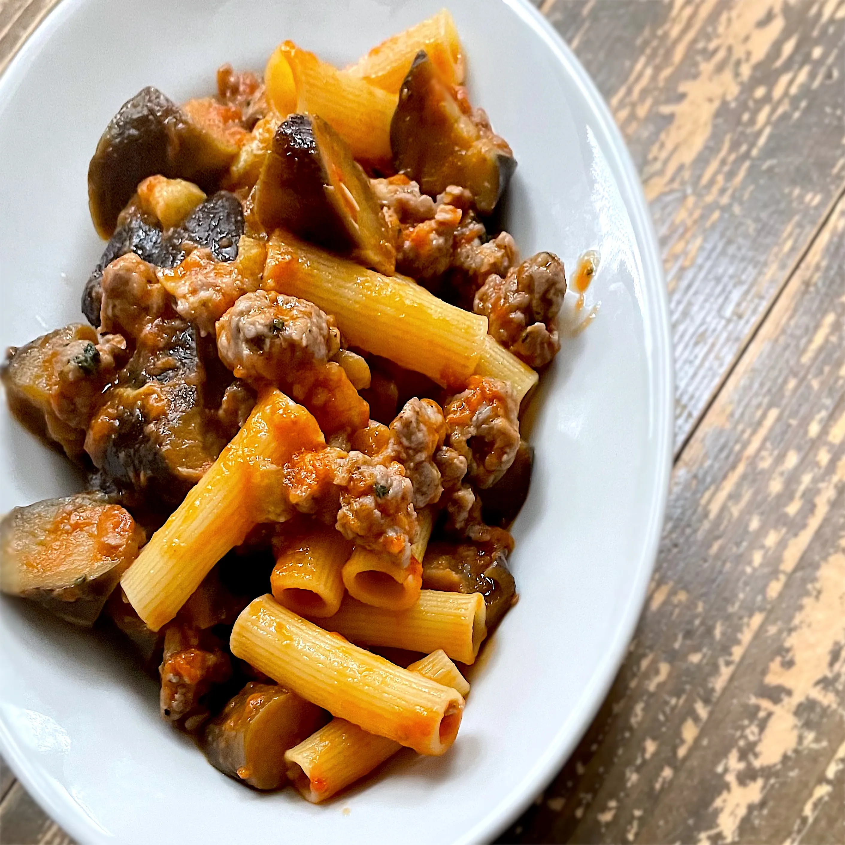 #サルシッチャと茄子のトマトソース