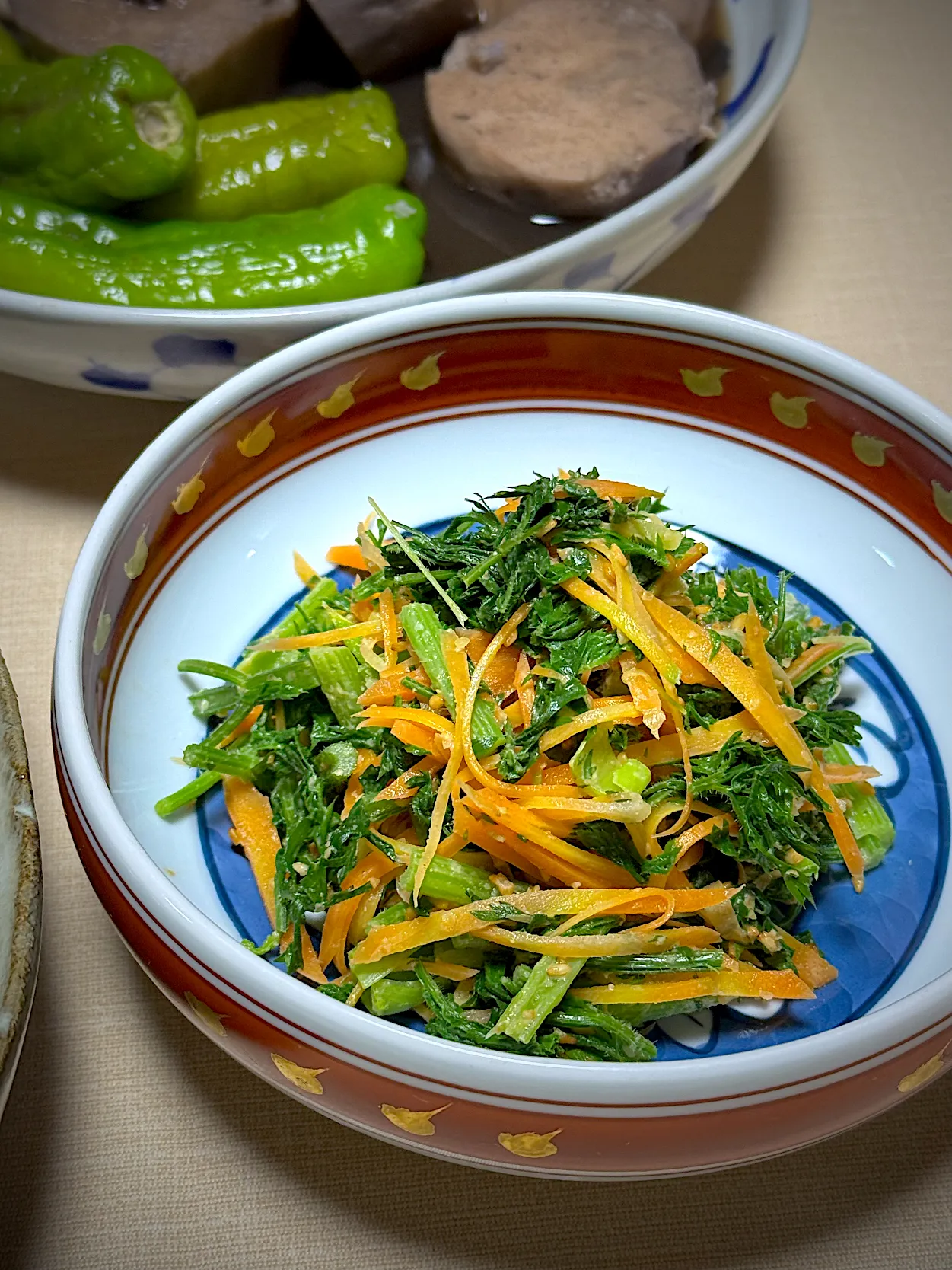 ❆ 葉にんじんのごま和え(ねりごま・金すりごま・味醂・薄口醤油・白だしほんの少し)