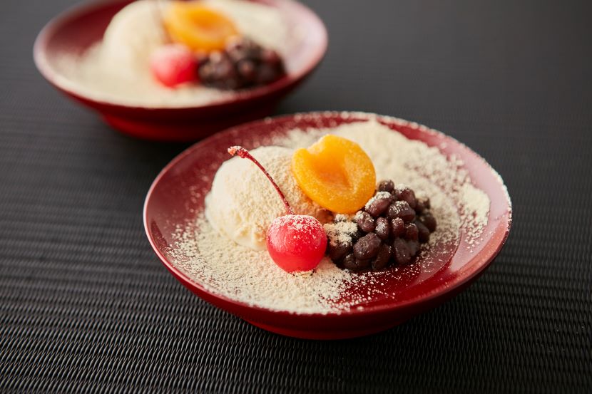 サッとひとふりで、たんぱく質と食物繊維がたっぷり!バニラアイスと小豆との相性が抜群のさっぱりいただける和風パフェです。