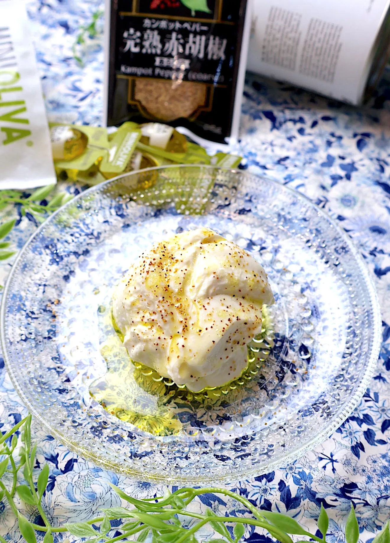 私はユウキ食品さんのミニエクストラバージンオリーブオイル、マヨルカ島の塩、完熟赤胡椒をかけました😊