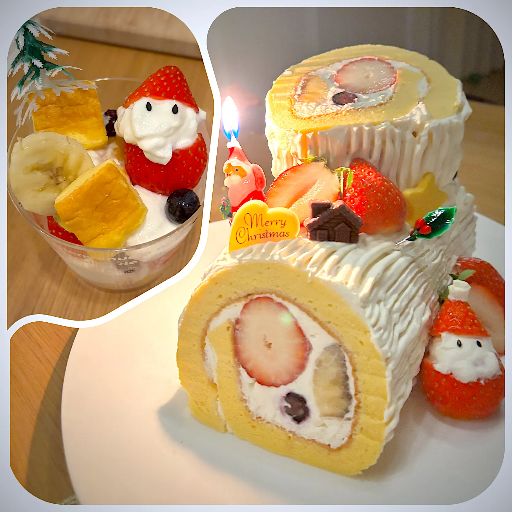 ロールケーキの端っこを切り落とした部分一辺だけをトライフルケーキに使いました🍰(1/20程度)いつもより少しだけ砂糖と油を控えめにして1歳娘も一緒に食べられるようにしました😌