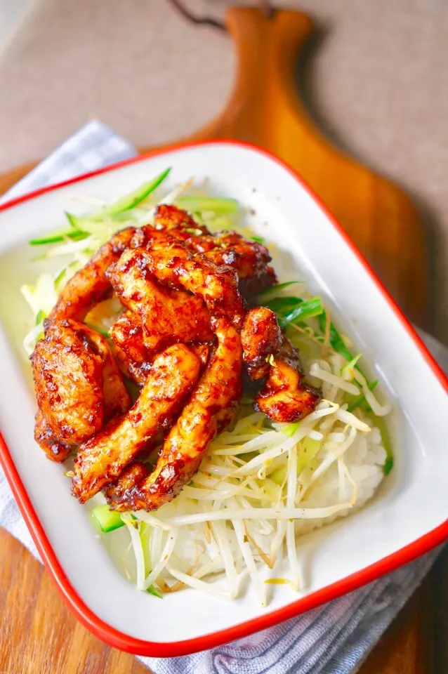 今回のレシピも冷めても美味しいので、お弁当にもオススメです。是非作ってみて下さい(*^^*)#とりのむね肉#むね肉 #甜麺醤 #中華丼 #お野菜たっぷり #丼