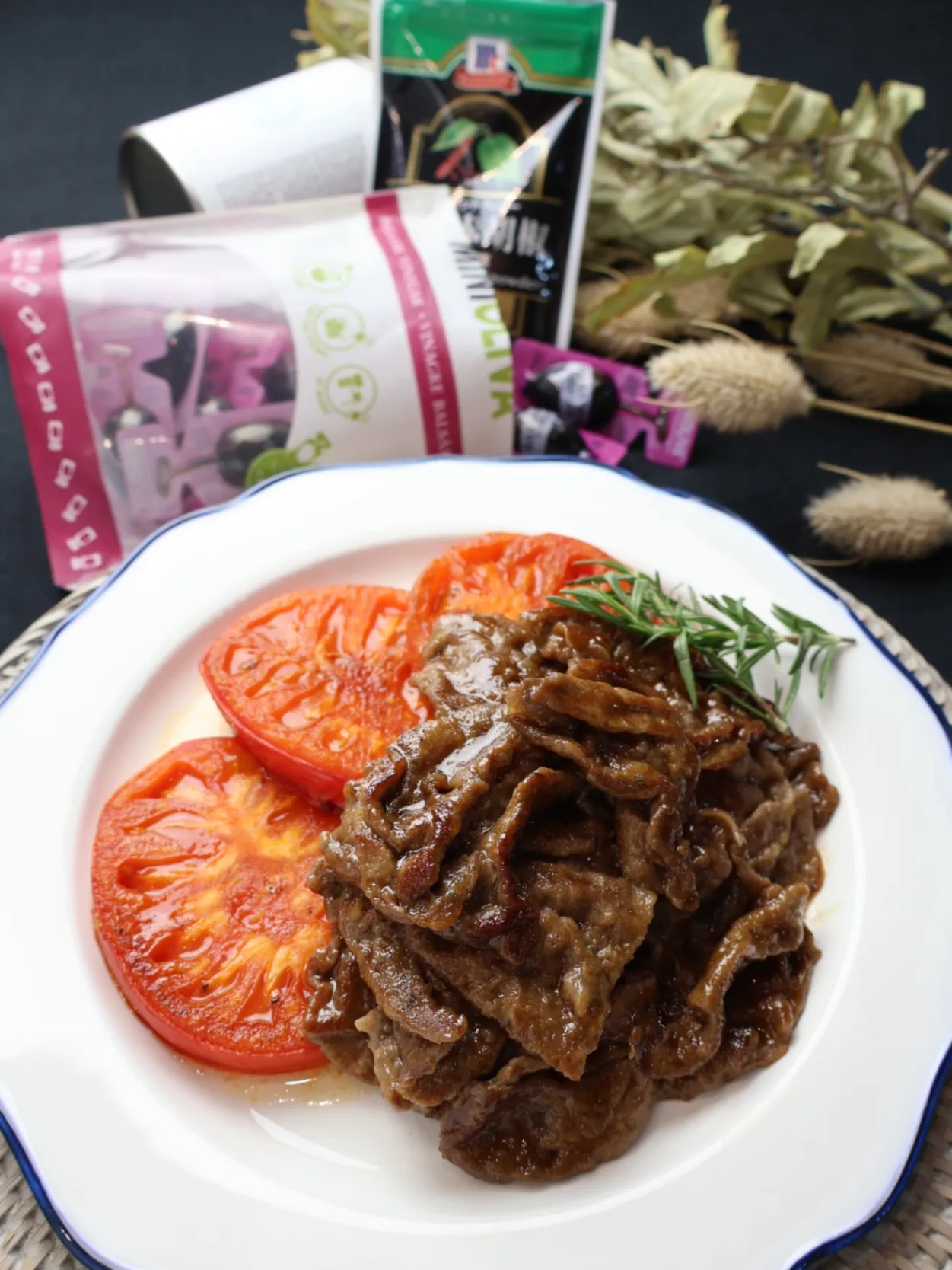 バルサミコ酢とハチミツで美味しそうソースに絡んだ牛肉が凄く美味しそう〜😋