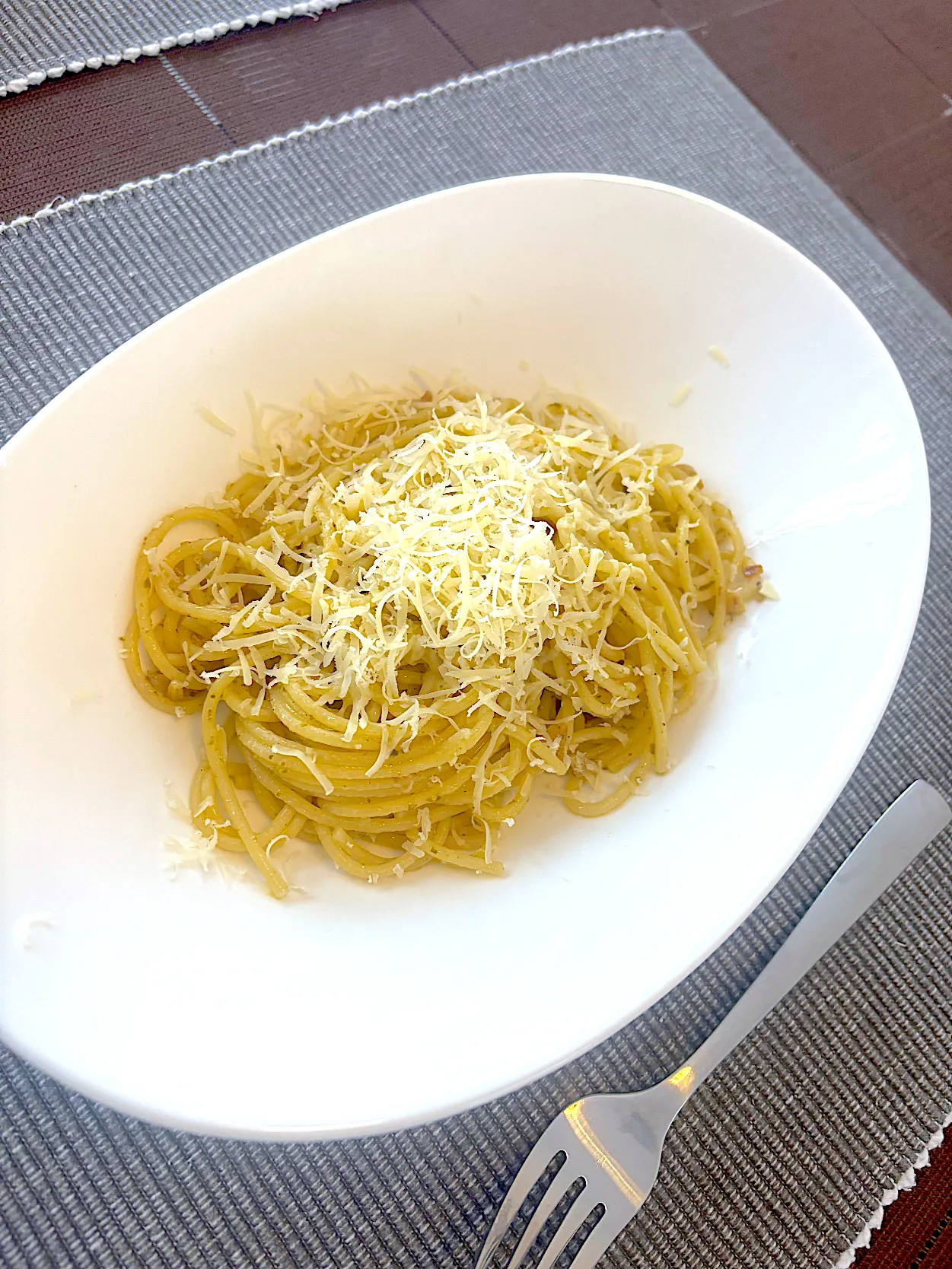 #ペペロンチーノの味付けにジェノベーゼソース入れてみた #具なしパスタ
