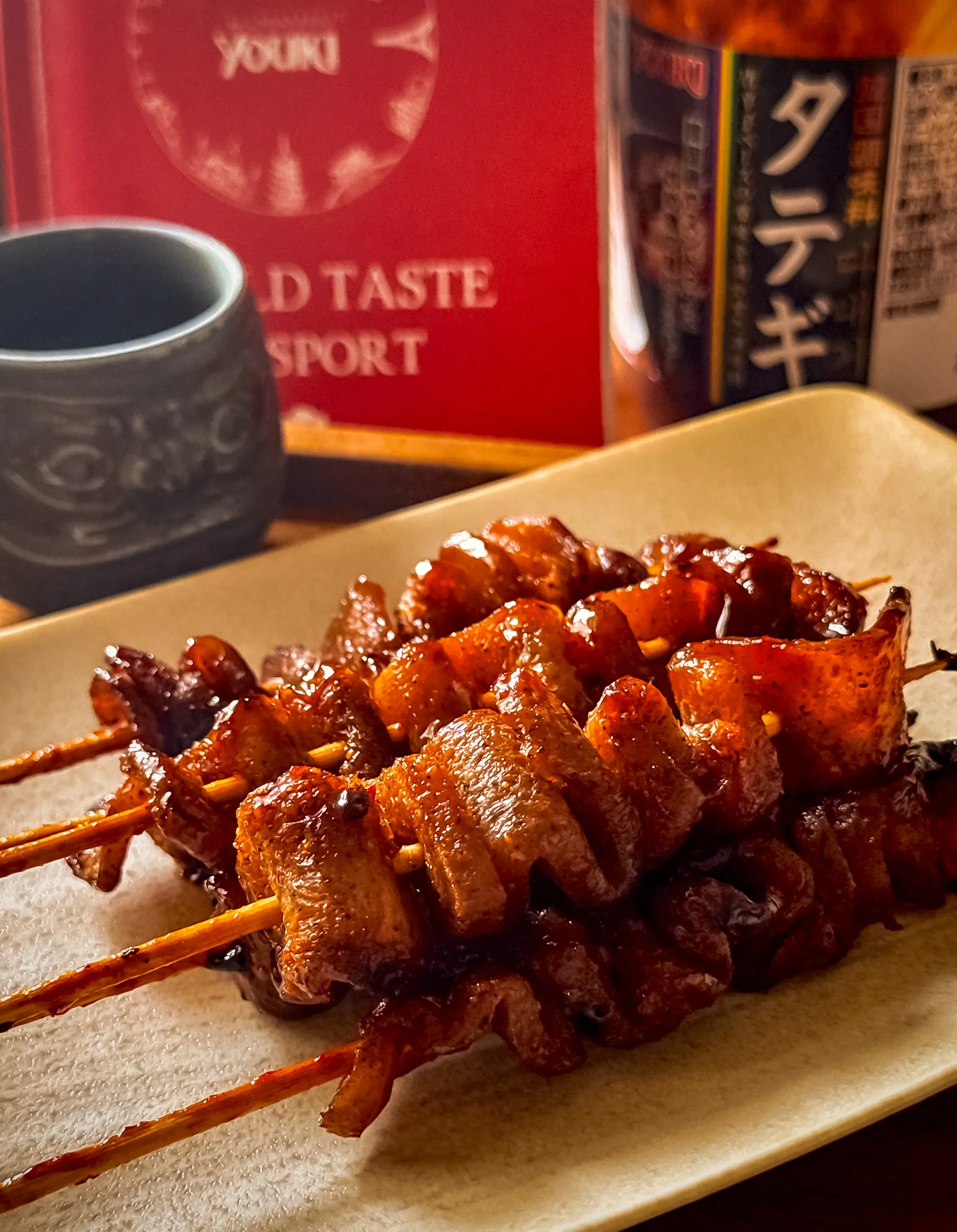 タテギの旨辛で味付けしたら、鶏皮串を飛び越えてホルモンっぽくなりました(*´艸`)