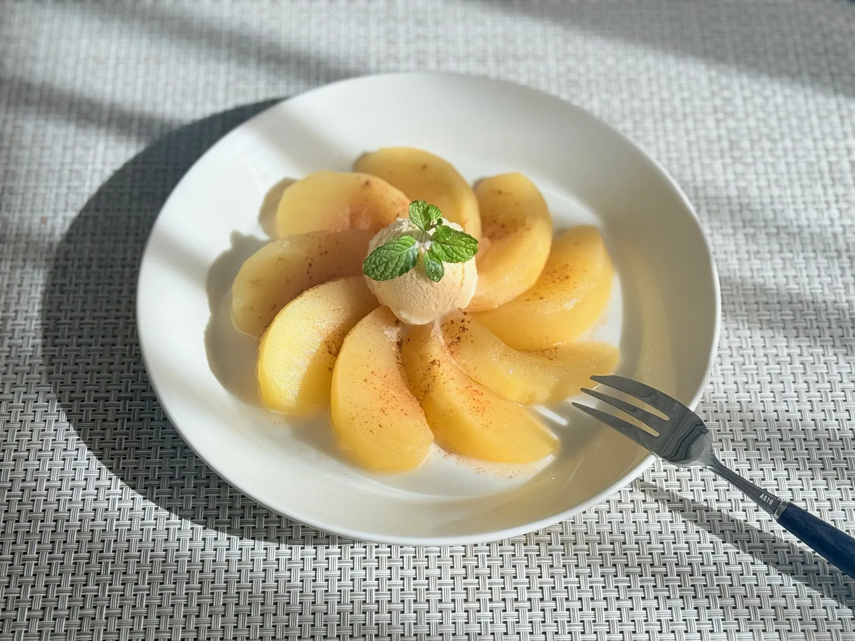 *自家製甘酒パンと手づくりりんごコンポートで朝ごはん...