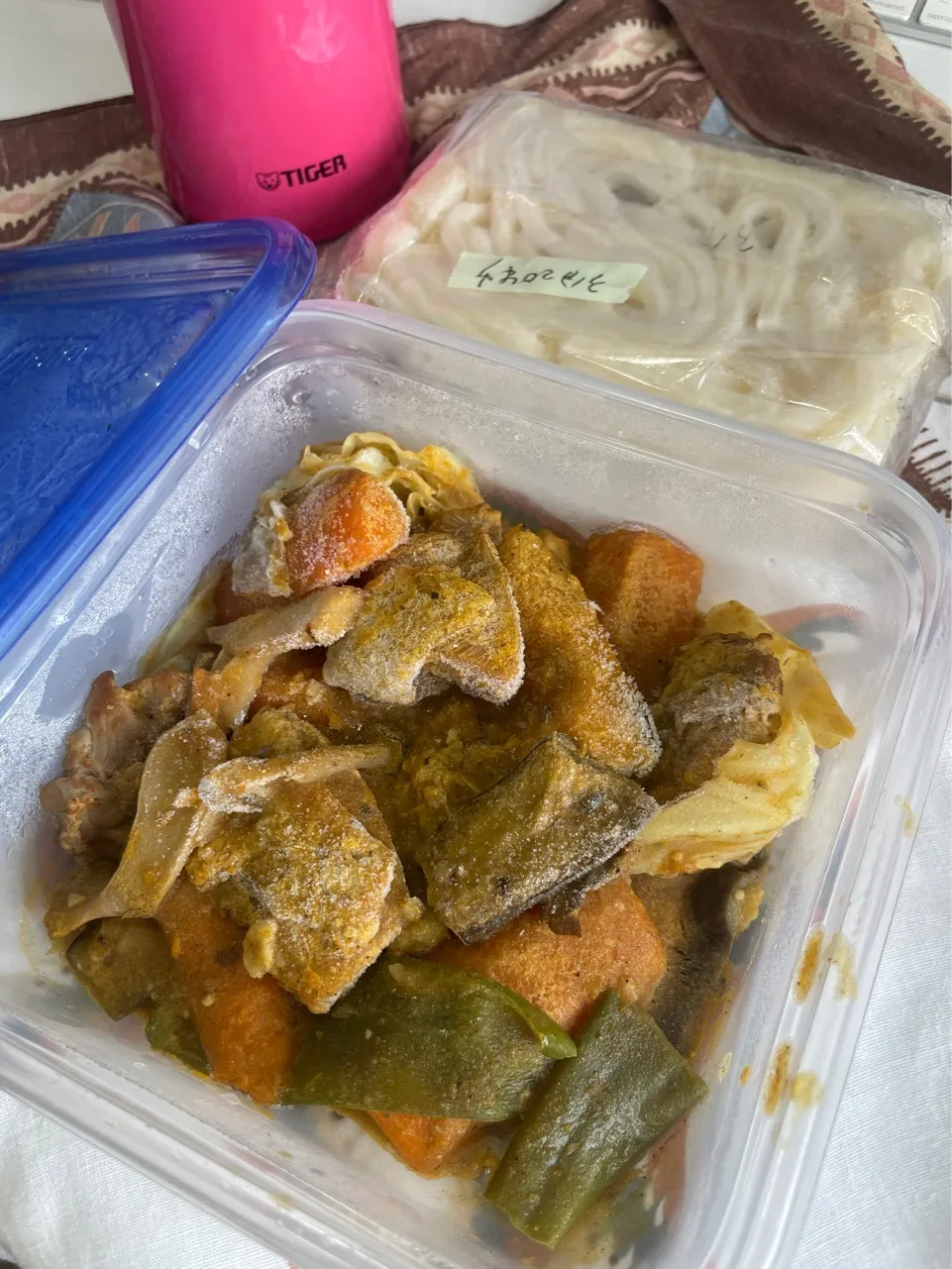 冷凍スープカレーと冷凍うどん、味噌汁