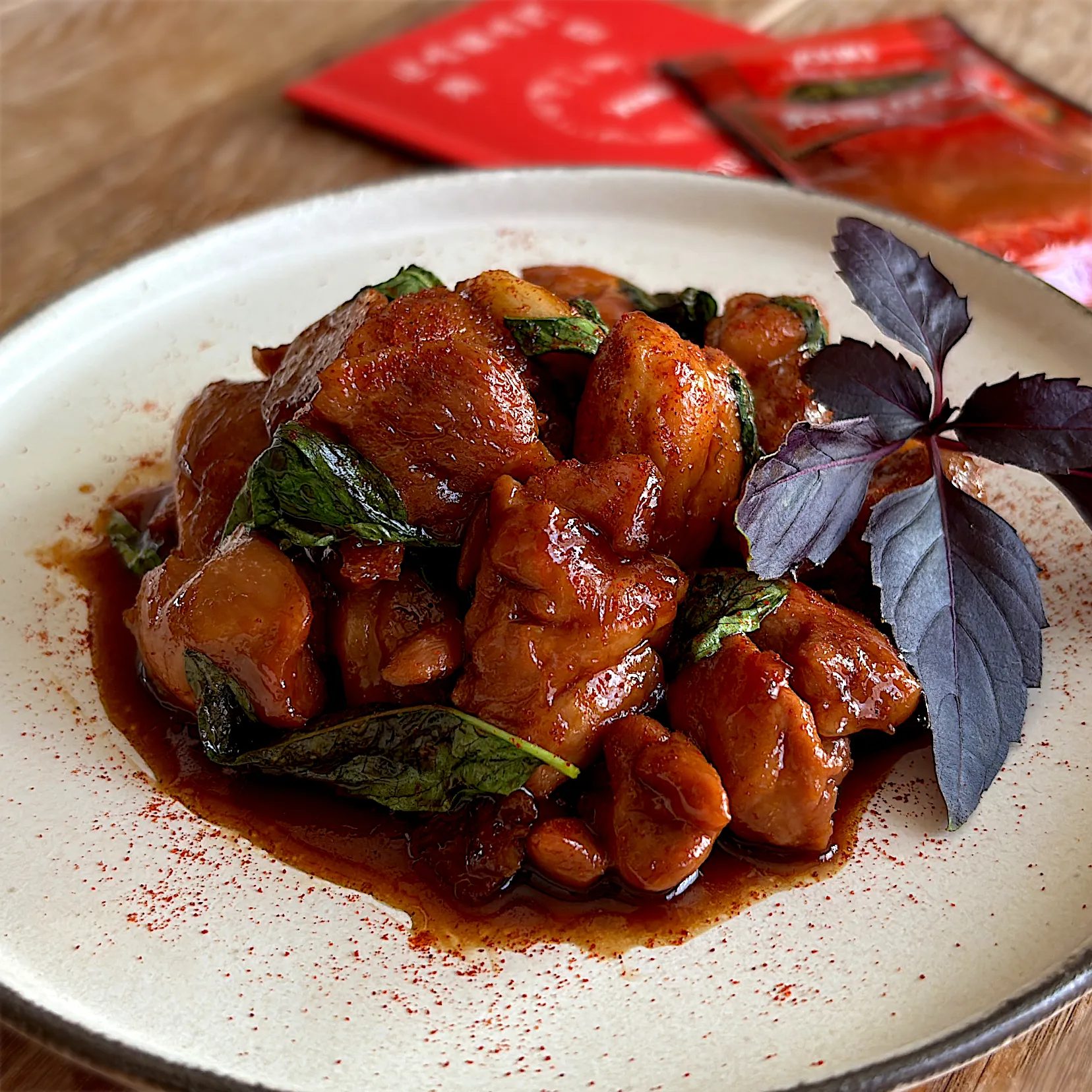 個人的に三杯鶏、三杯菇には唐辛子粉🌶️フリフリ♪甘辛が更に食欲そそります🤤