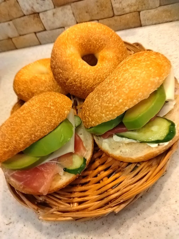 生ハムとクリームチーズのベーグルサンドです〜🥯娘の...