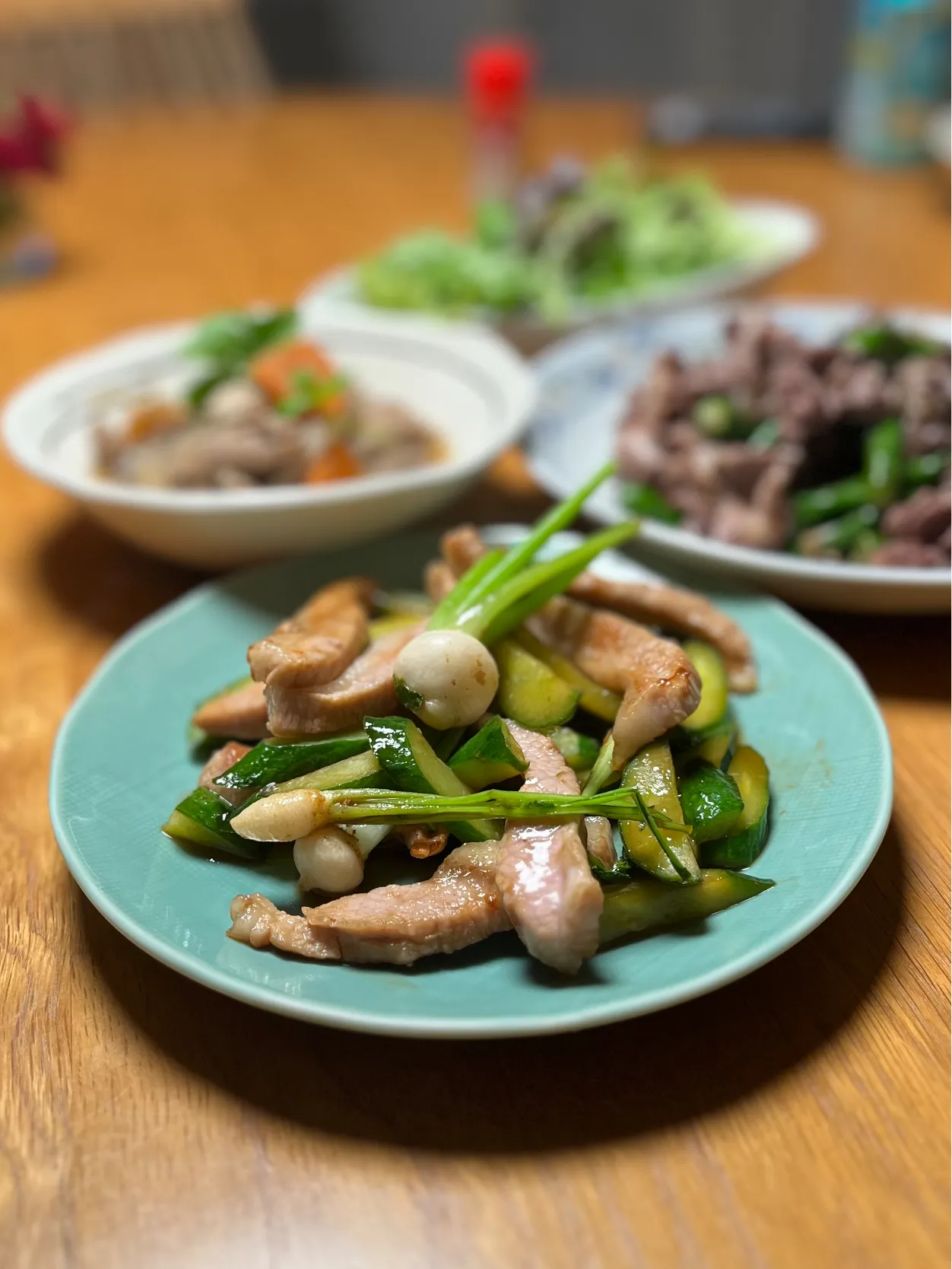 11/23の夕食 蕪の胡瓜と豚とろのポン酢炒め