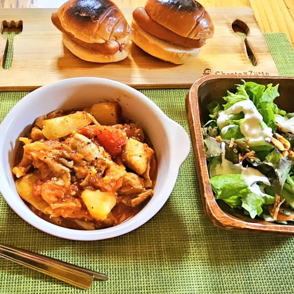 「レタスのヨーグルトマヨ、フライドオニオン、