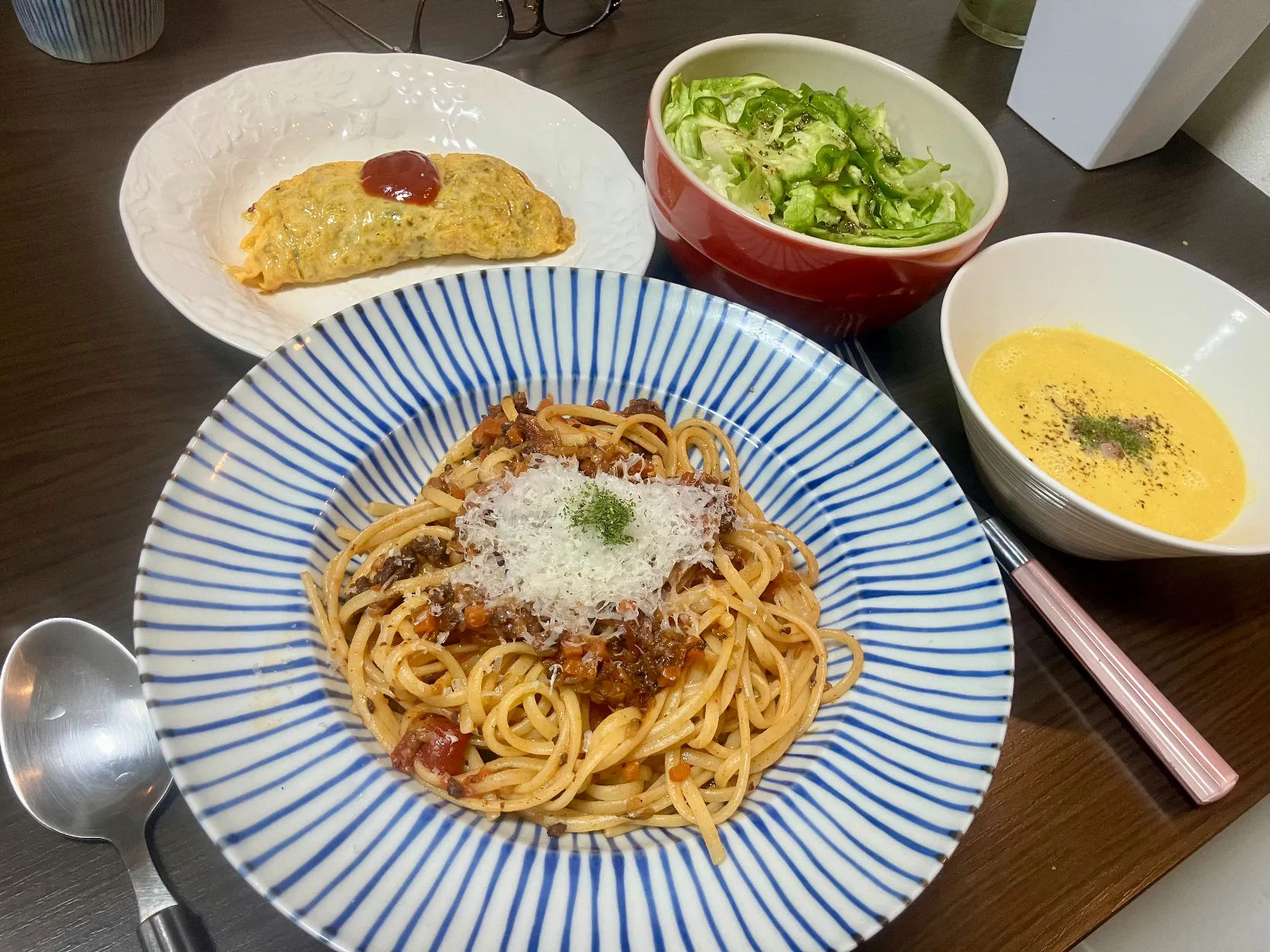 #残り物 #晩ご飯 #自炊 #ポタージュ #カボチャ #パスタ #スパゲッティ #ソフリット #無添加