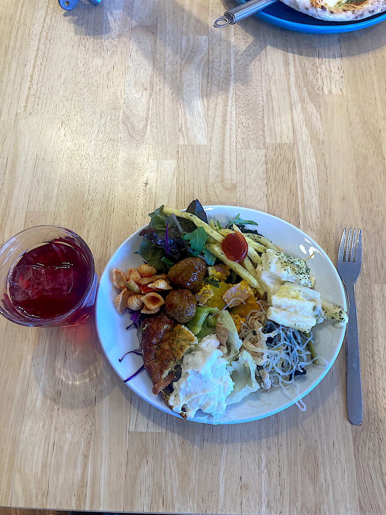 今日の昼ご飯@「パスタとワッフル WASHAGANCHI 田原店」さん③ ぼくはピザ・マルガリータを(1800円ちょっと)とりましたが、1800円の中にこれも含まれているなんて、お値打ちです!