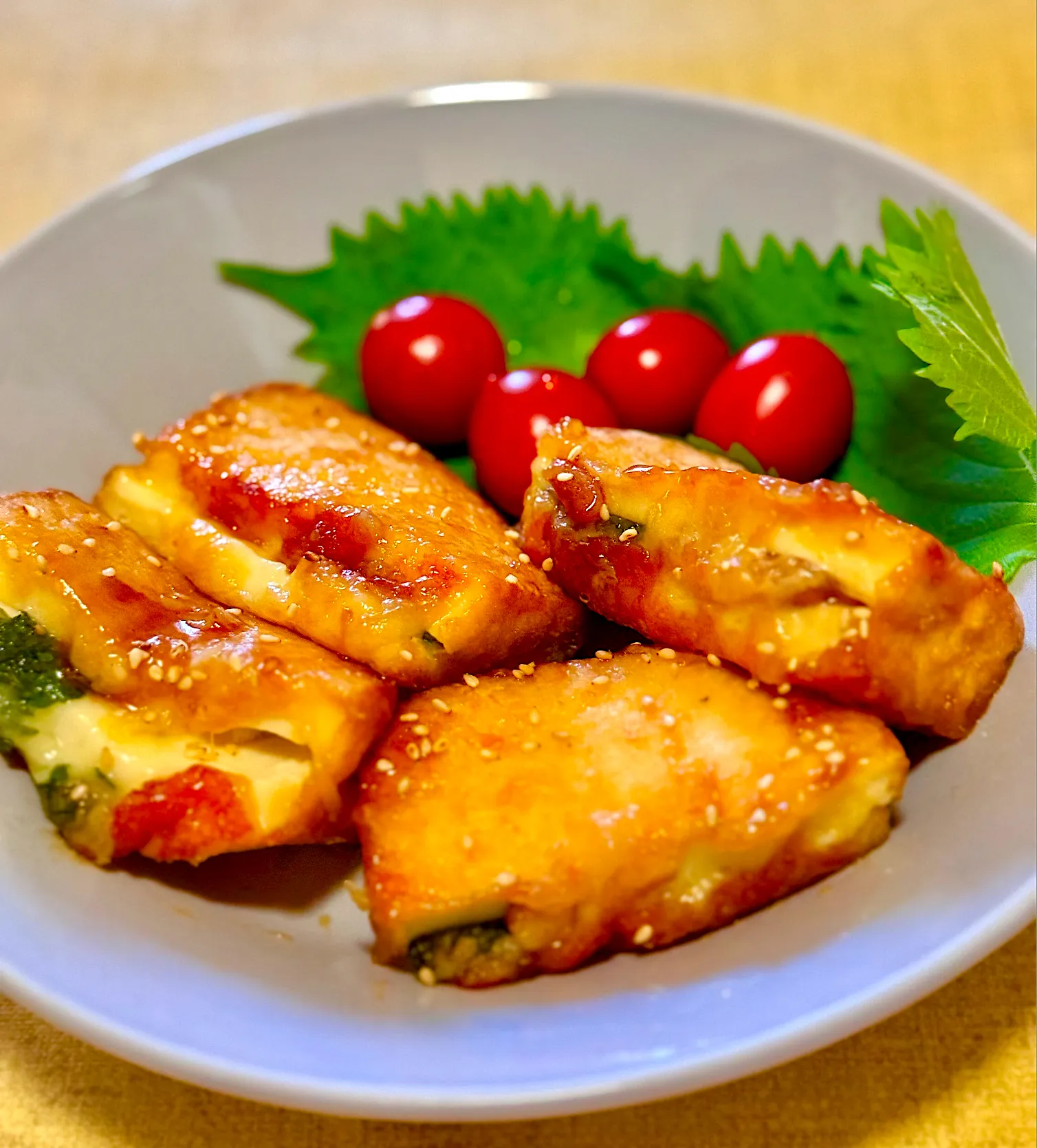 #厚揚げ#梅肉#大葉#スライスチーズ