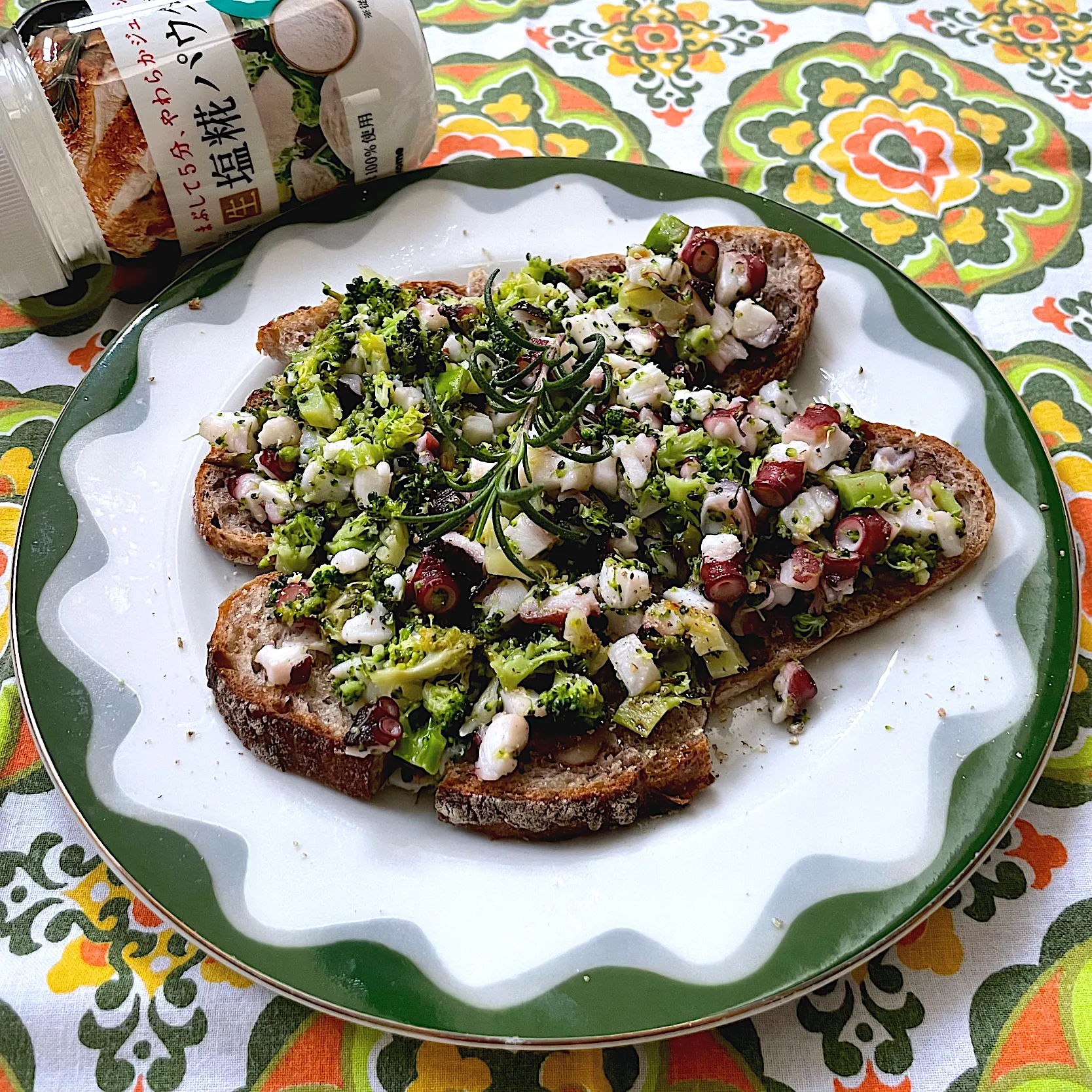#おつまみ #家庭料理 #ハーブの日(8月2日) #タコの日(8月8日) #蛸の日(7月2日) #ブロッコリー #タルティーヌ #タルタル #クリトモ式 #生塩糀パウダー #PR