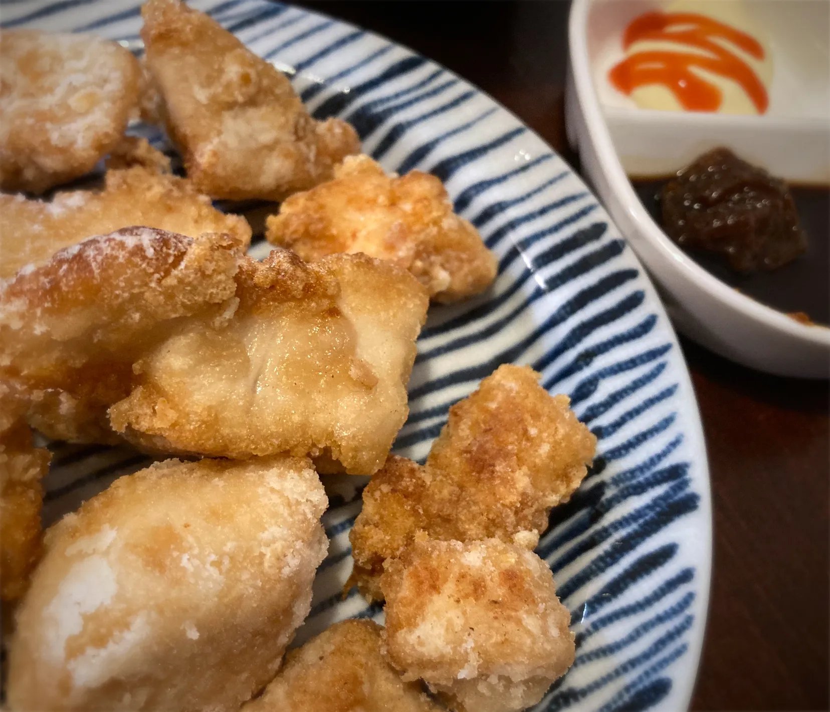 ビンチョウマグロを唐揚にして、シラチャーマヨソースとXO醤香醋ソースの2種類ディップソースで食べ比べ🐟💞