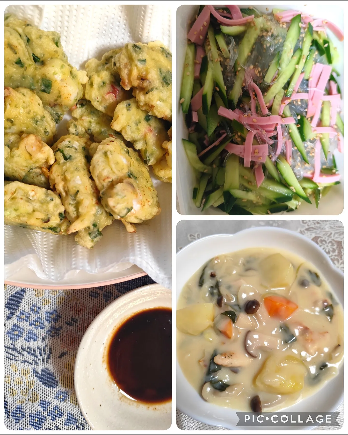 ピカピカささみシチューも酢の物もおいしそう😋😋