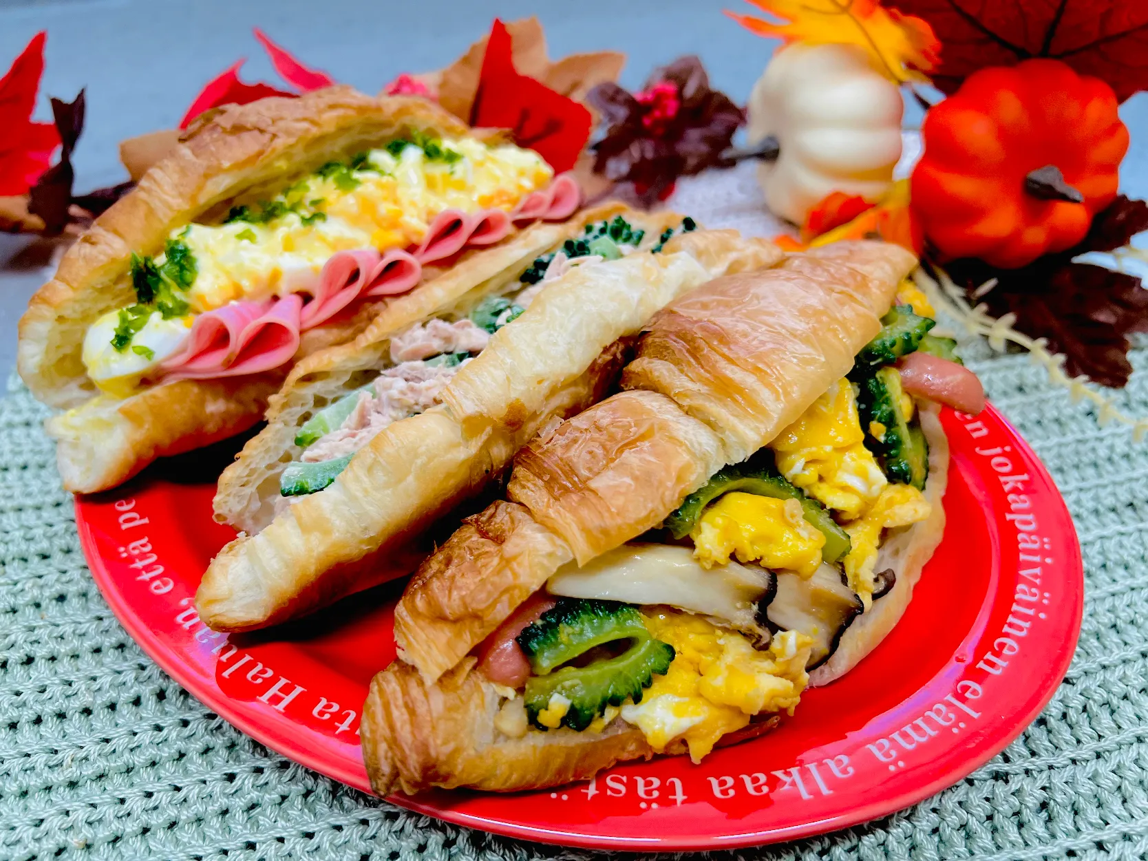 彩り綺麗で具沢山なクロワッサンサンド✨とっても美味しそうです😍