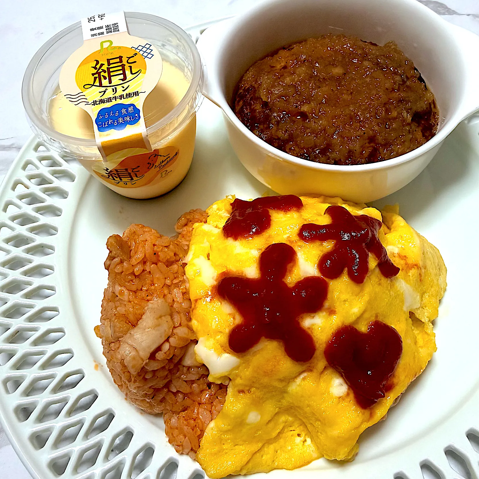#ワンプレート #おうちごはん #夕食 #オムライス #ハンバーグ #プリン #snapdish