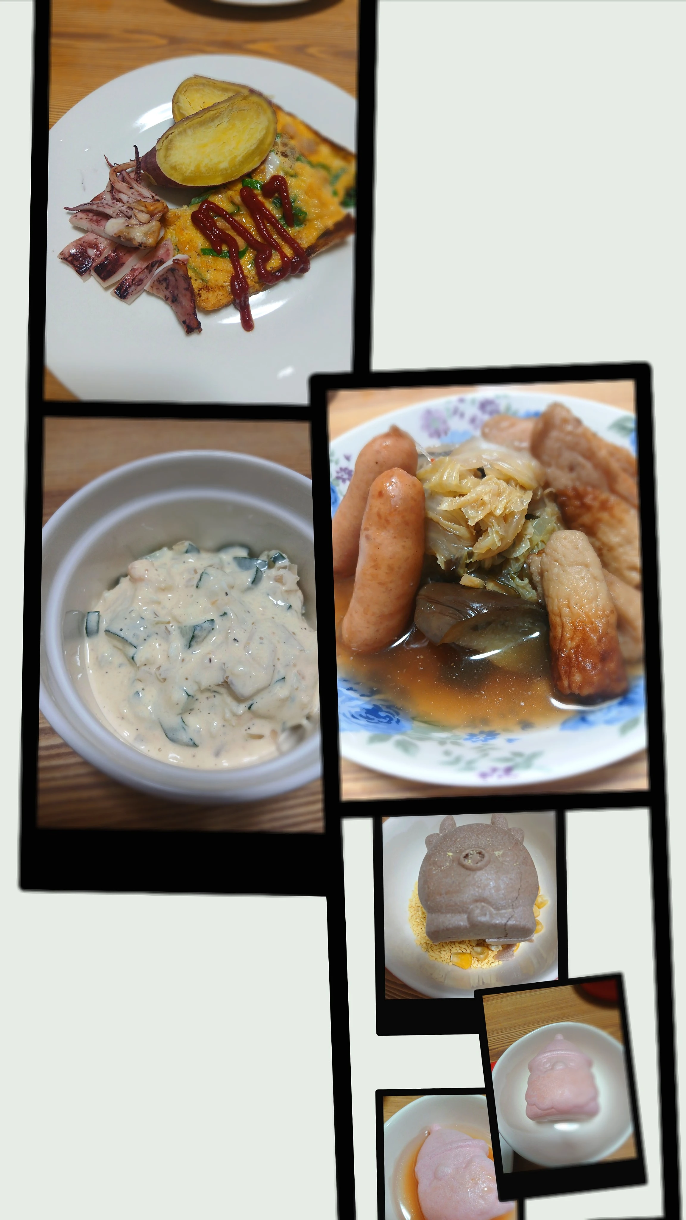 イカや卵焼きや茄子と白菜の炊いたんでなんだか久々な和食楽しめました😆✨