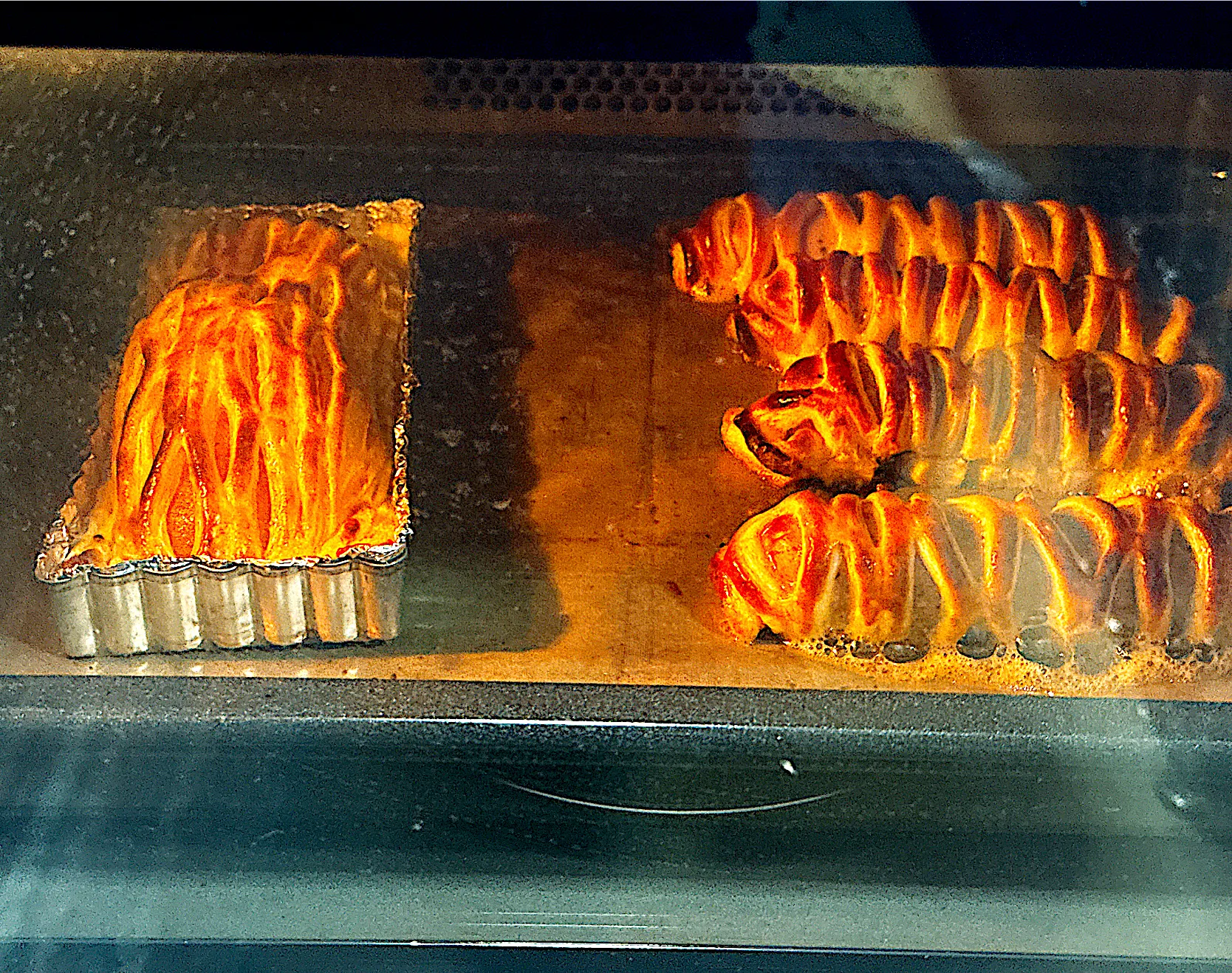 今日は冷凍庫からはみ出たパイシートとソーセージとリンゴのコンポートを使ってパイ二種焼きました。