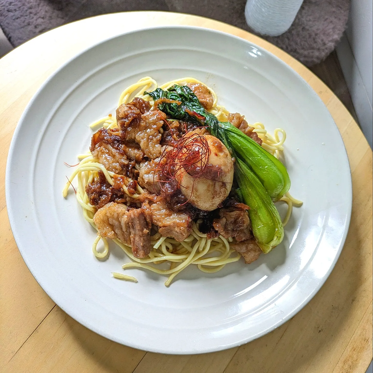 #魯肉麺 #魯肉 #魯肉飯 #豚バラ肉 #フライドオニオン #八角 #五香粉 #醤油 #紹興酒 #三温糖 #胡麻油 #にんにく #生姜 #みりん #糸唐辛子 #青梗菜 #中華麺 #ほんだし #煮玉子