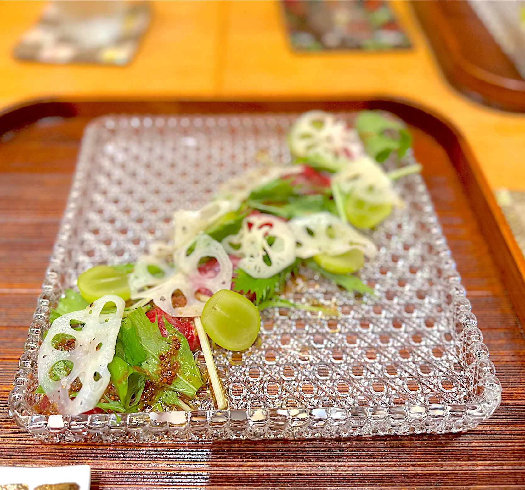春巻き、豚こまと茄子の味噌つけソーメン、鰯のお造り、...