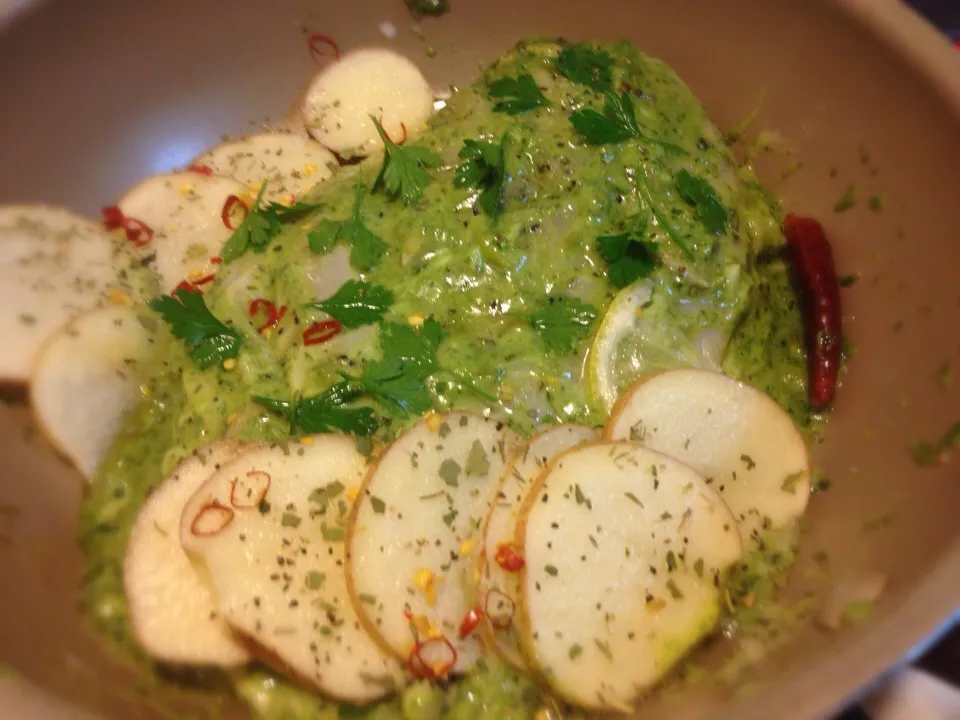 • 蒸し料理にオイルをかける、ヘルシーでおい