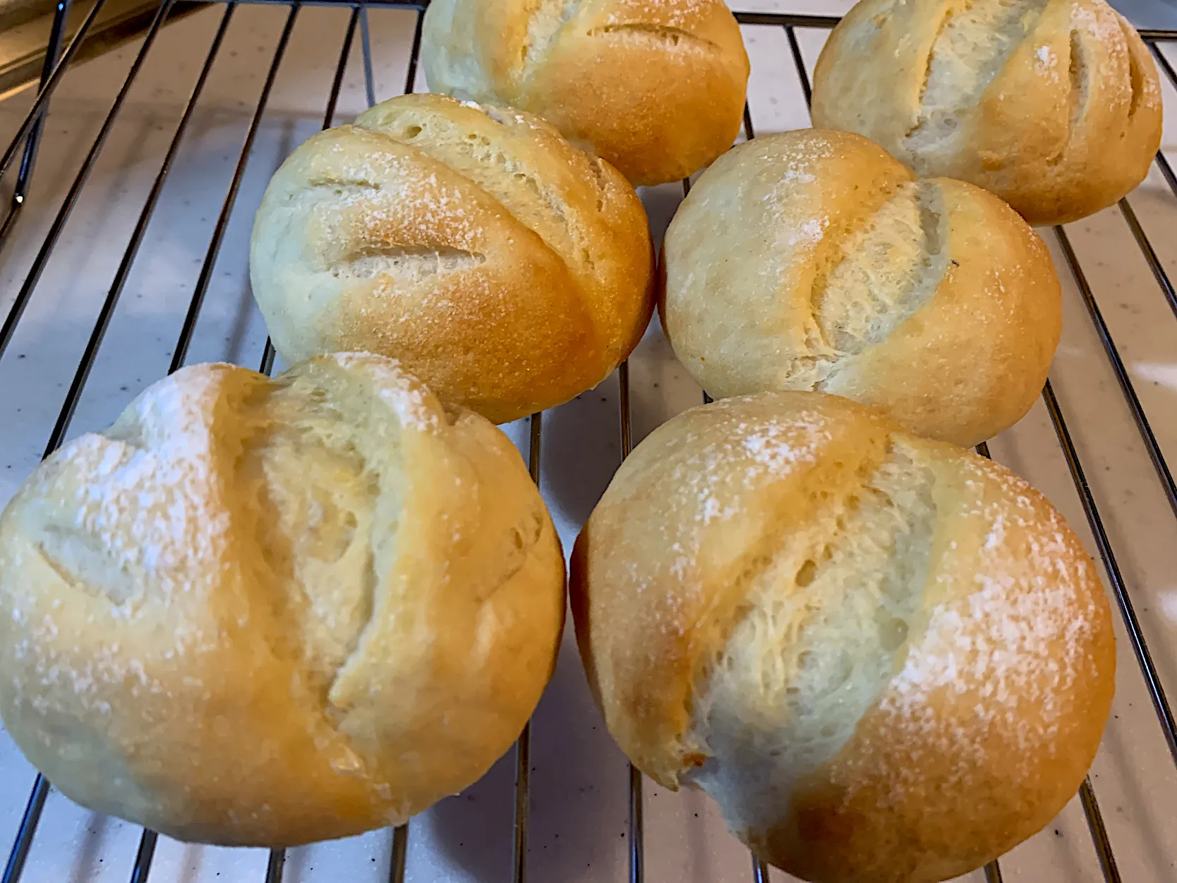 今日は、米粉だけではなく、膨らみを良くするためにグルテン粉を少しだけ混ぜ込んで作りました。小さ目を6個。お味は、どうでしょうか?