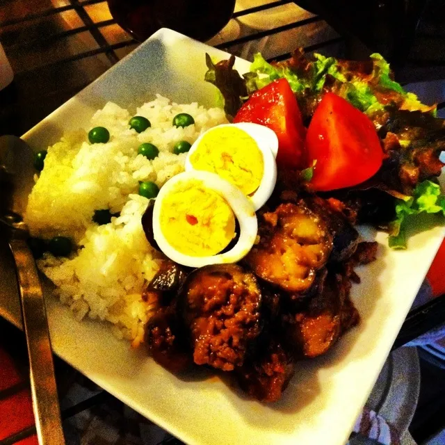 yes,I always think so after finished eating Bolognese, rice might be much better than pasta...;) I love eggplant,too!!