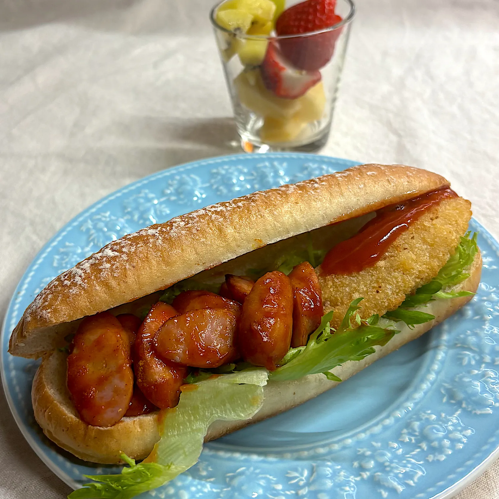 娘の朝ごはん!半分はコストコのチキンスティック、半分はシャウエッセンのカレーケチャップ😊 #かっちゃん杉 #クックパッドアンバサダー2023かっちゃん杉 #かっちゃん杉の朝ごはん #かっちゃん杉のサンドイッチ