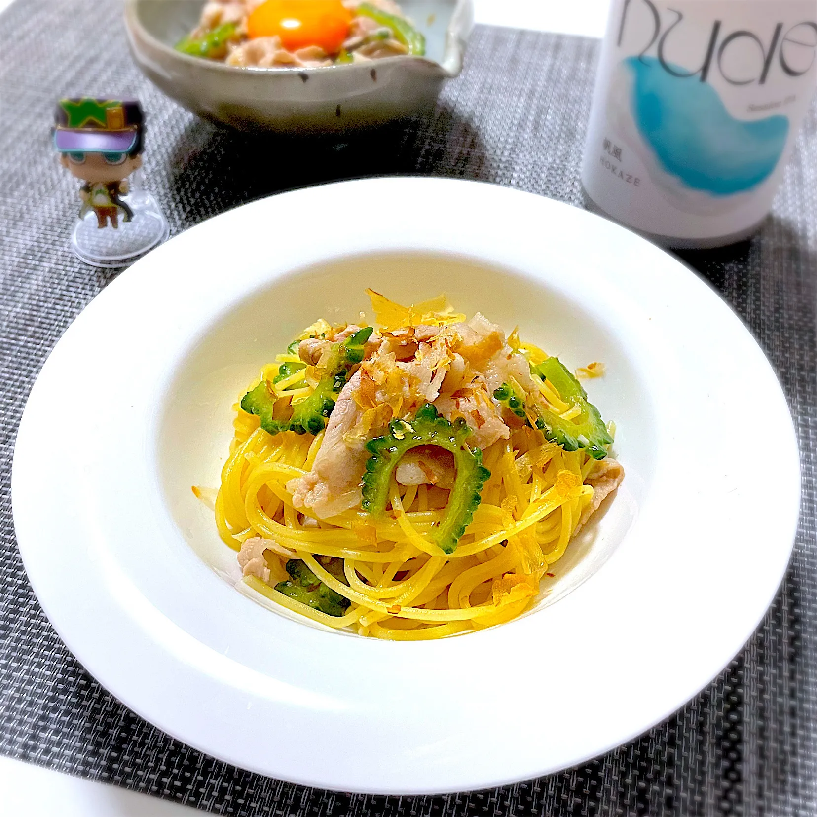 #ゴーヤ #豚しゃぶ #パスタ #豚しゃぶゴーヤサラダ #nude #簡単料理 #器 #ビール