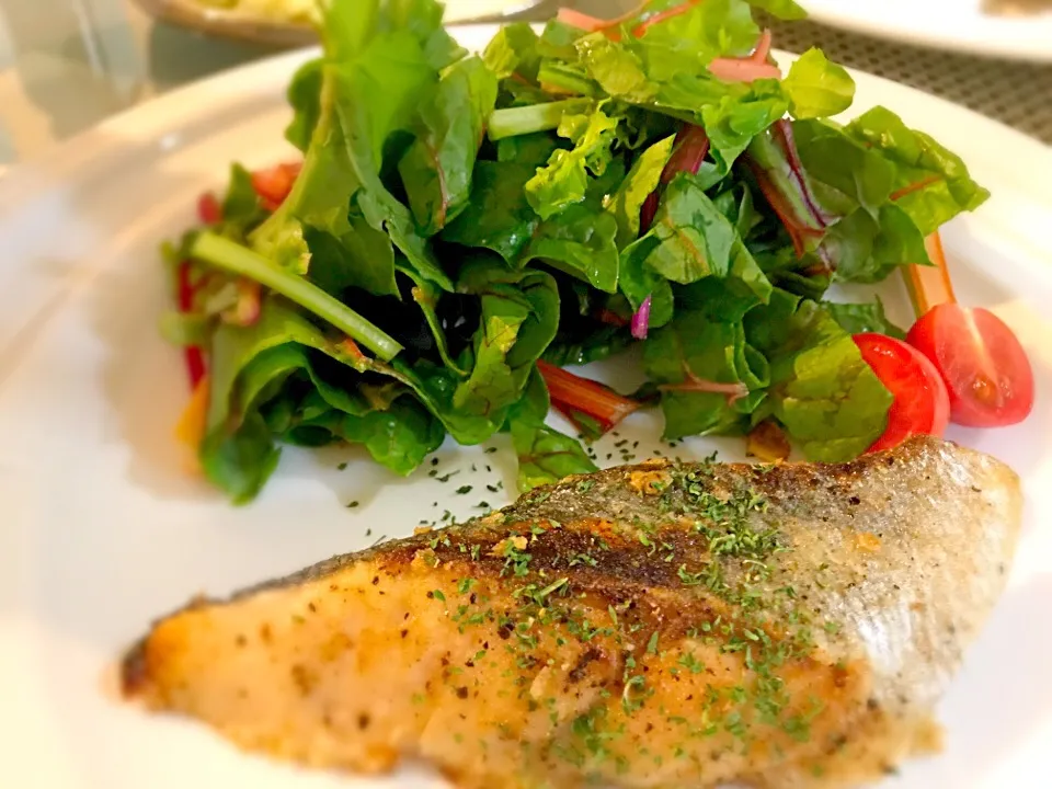 鮭のバタームニエル 俵つくねバーグ 小松菜としめじと...