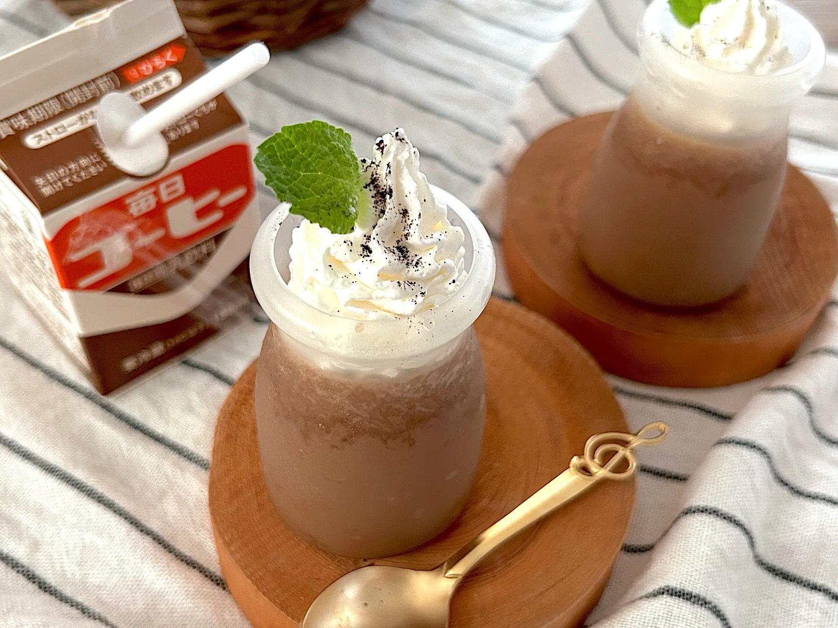 少しのコーヒー牛乳にゼラチン入れてレンチンで煮溶かしたら残りのコーヒー牛乳を入れ混ぜて、容器に入れるだけ