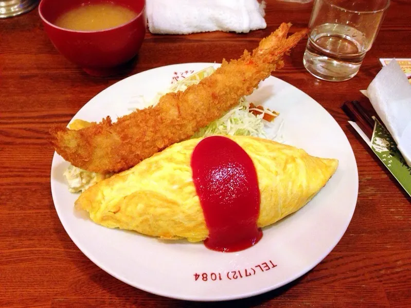 オムライスとエビフライ