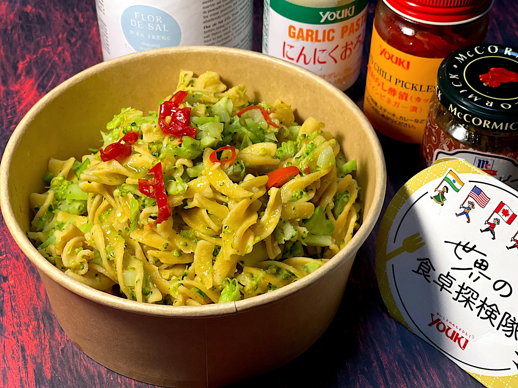 アンチョビと唐辛子で、ピリ辛うまい😋🍴