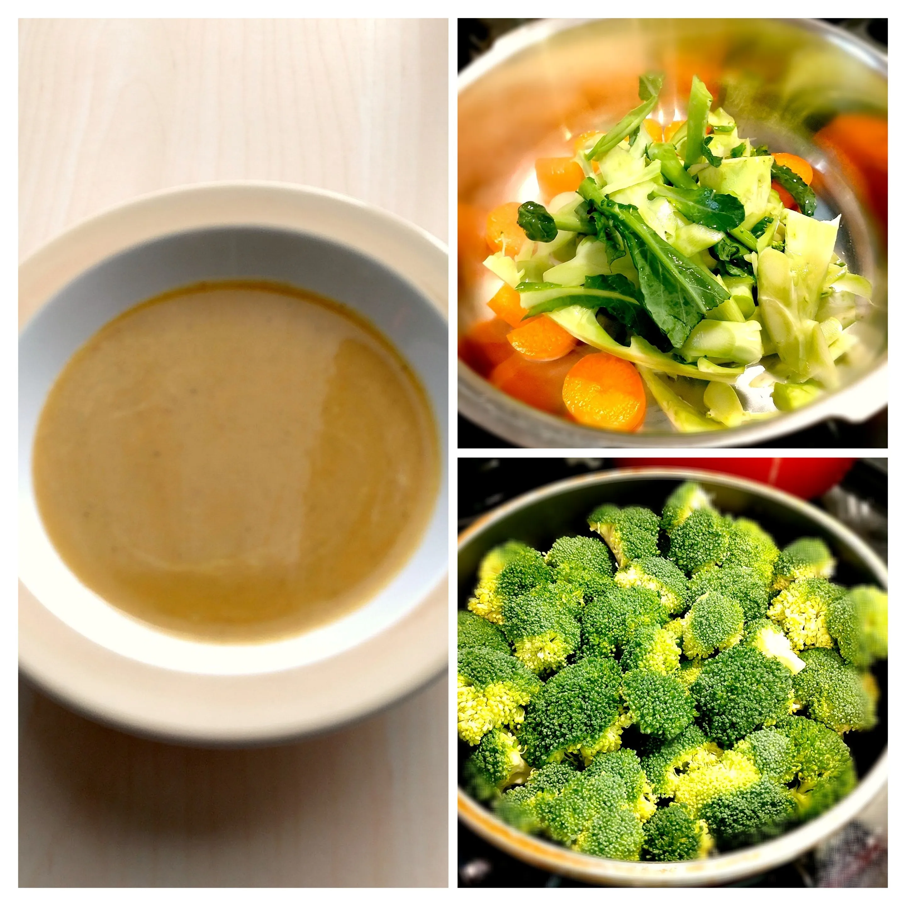 茎の外側の硬いところ、人参や 玉ねぎと一緒に炒めて、豆乳カレースープ にしました。