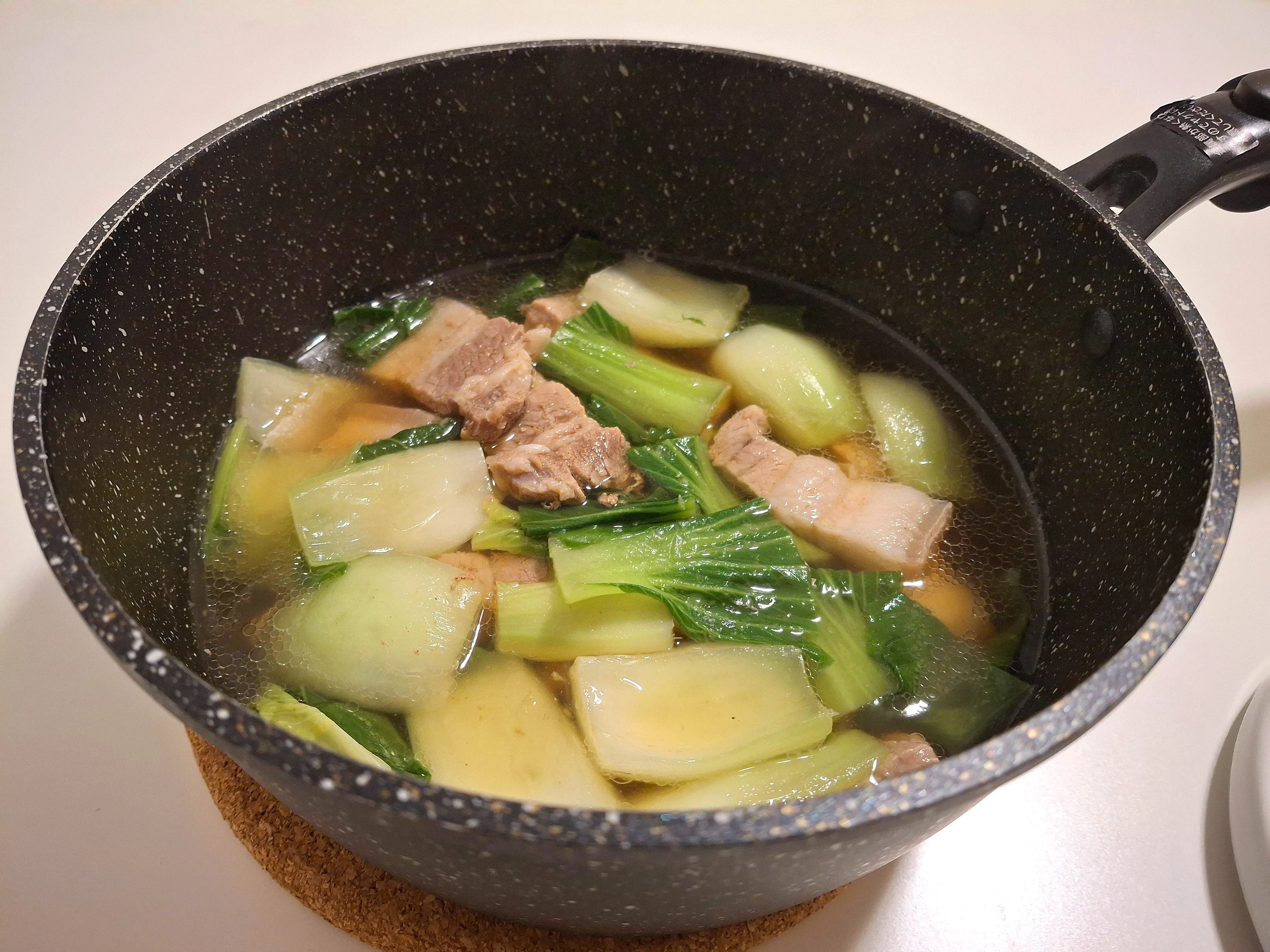 白菜が柔らかくなり、豚肉に火が通ったら完成。お好みでポン酢などをつけていただくと美味しいです。